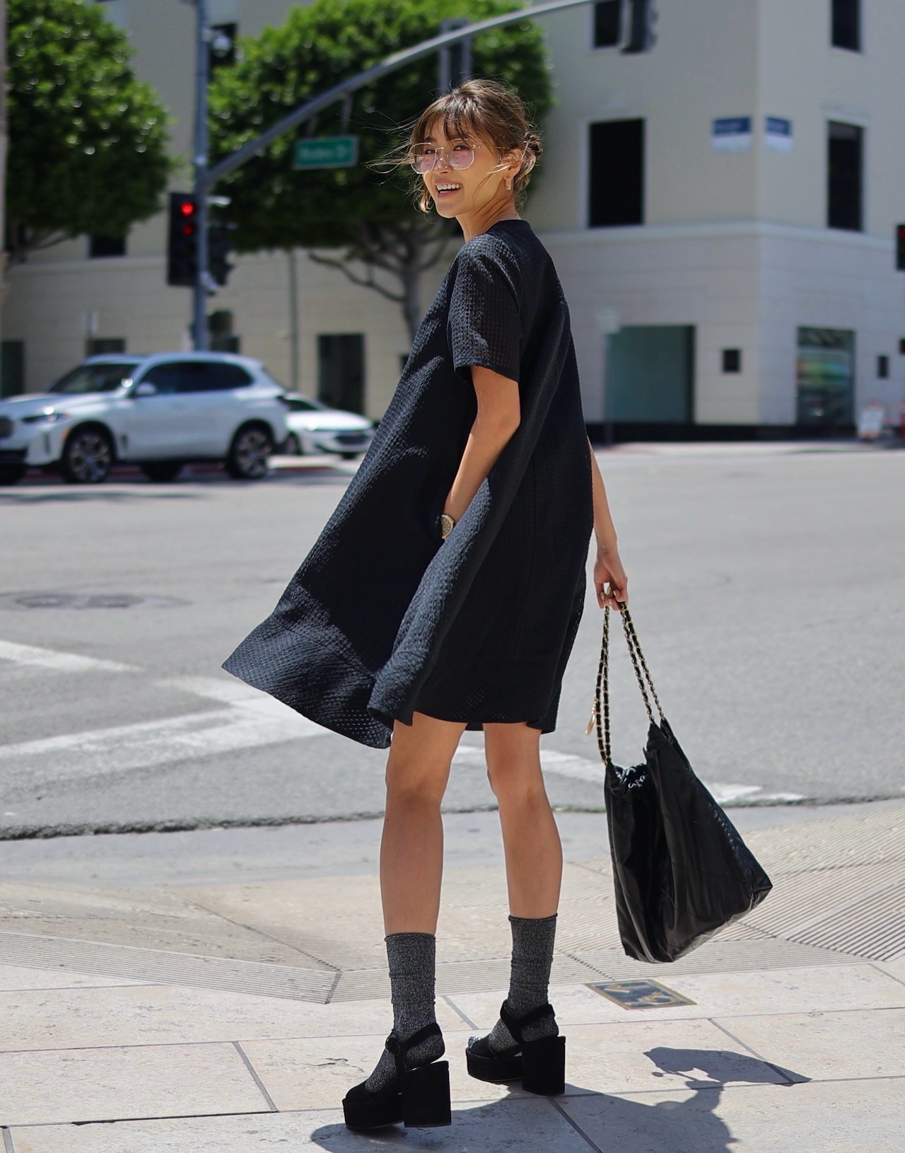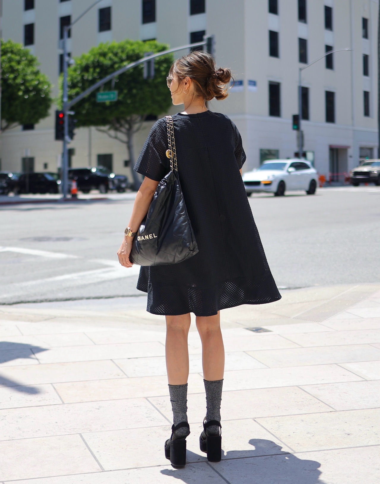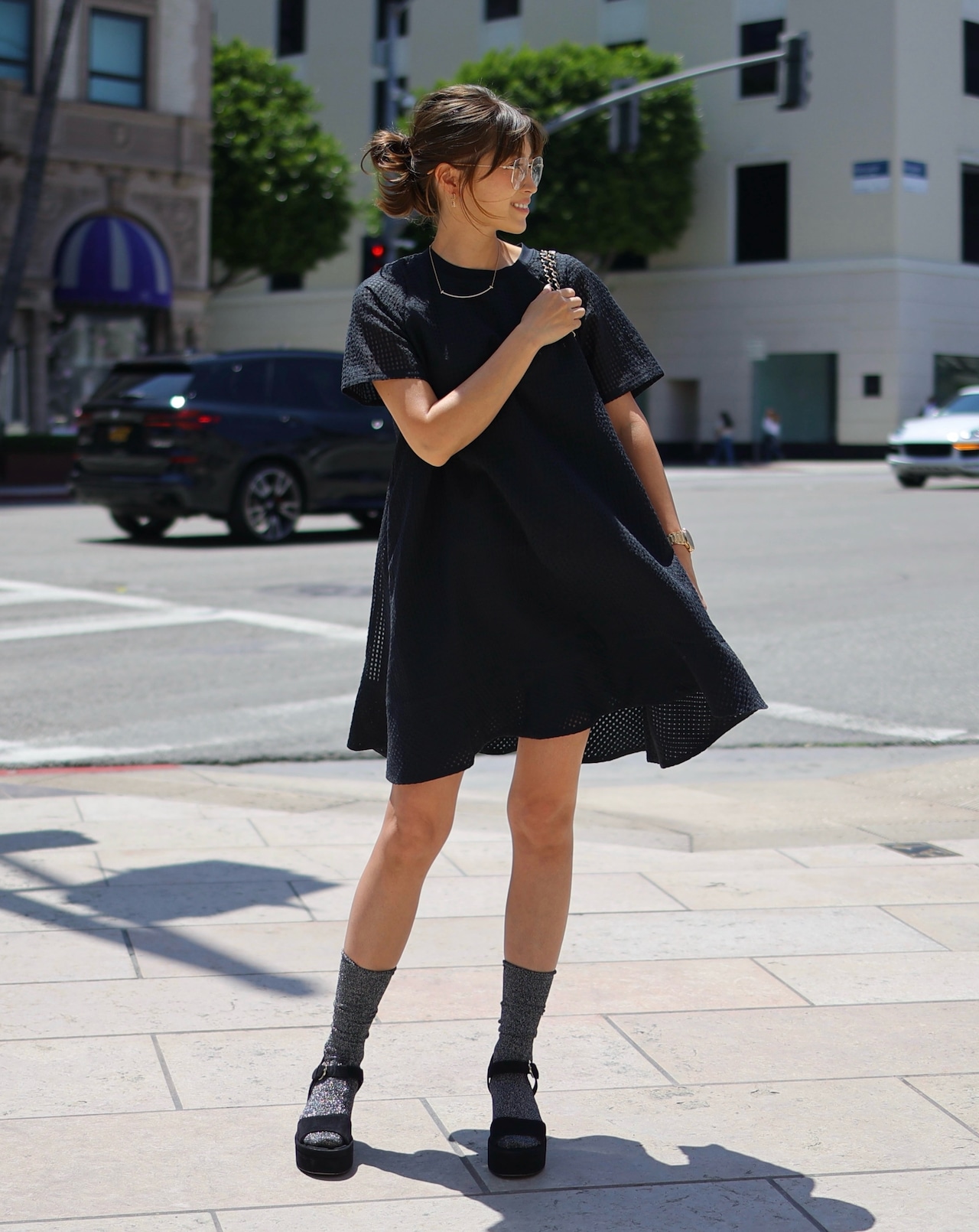 ふわりと揺れるたびに、ワンピースのシアー感が引き立ち、1枚で存在感のあるスタイリングが完成します。