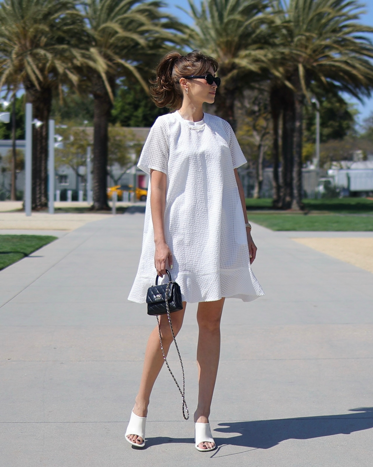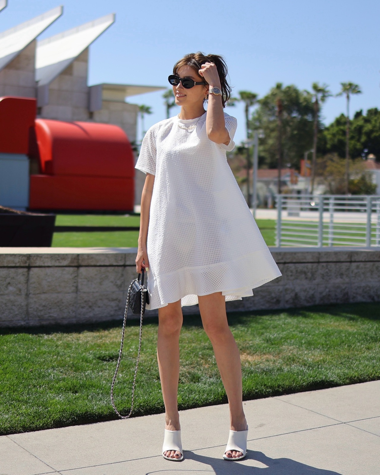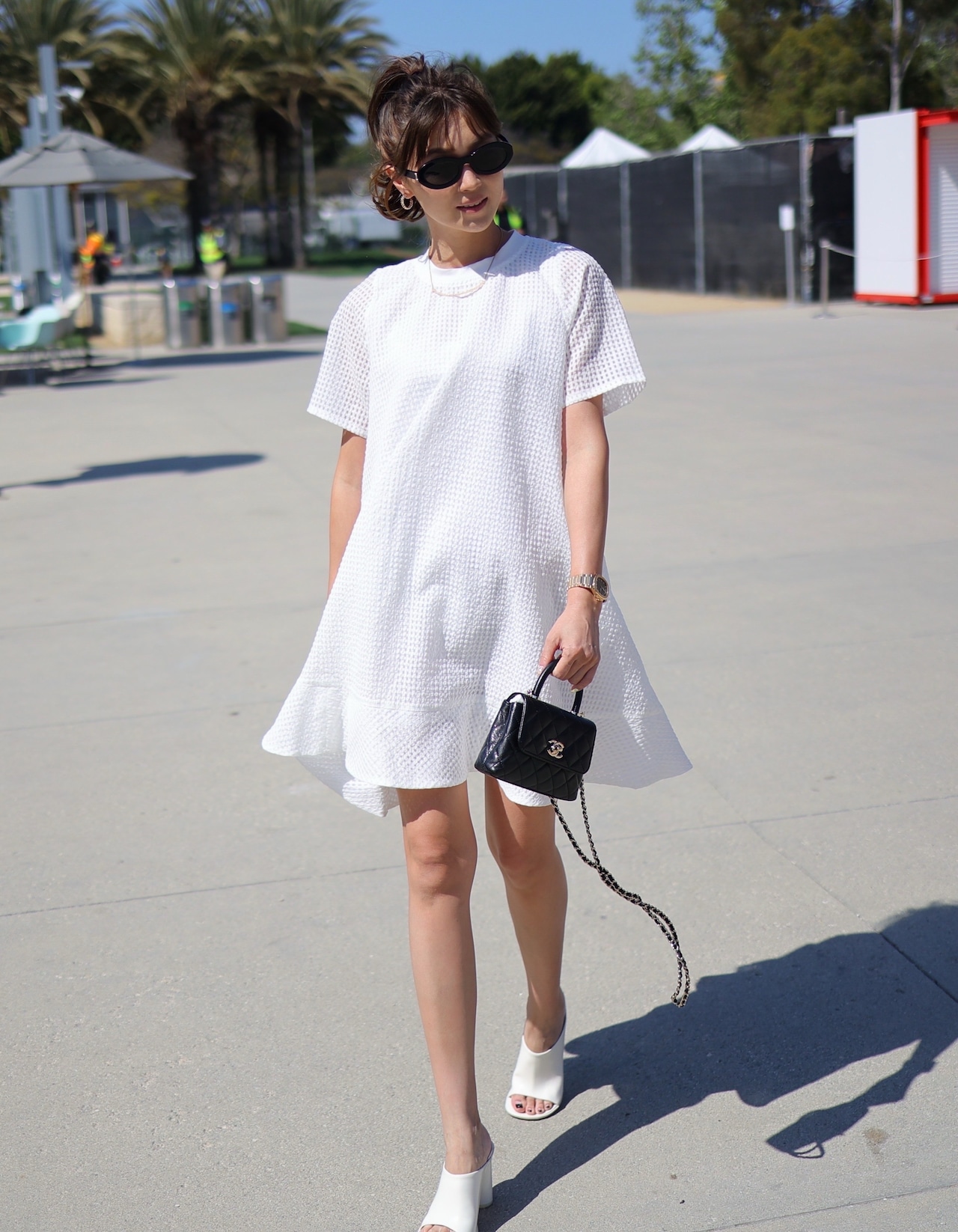 ふわりと揺れるたびに、ワンピースのシアー感が引き立ち、1枚で存在感のあるスタイリングが完成します。