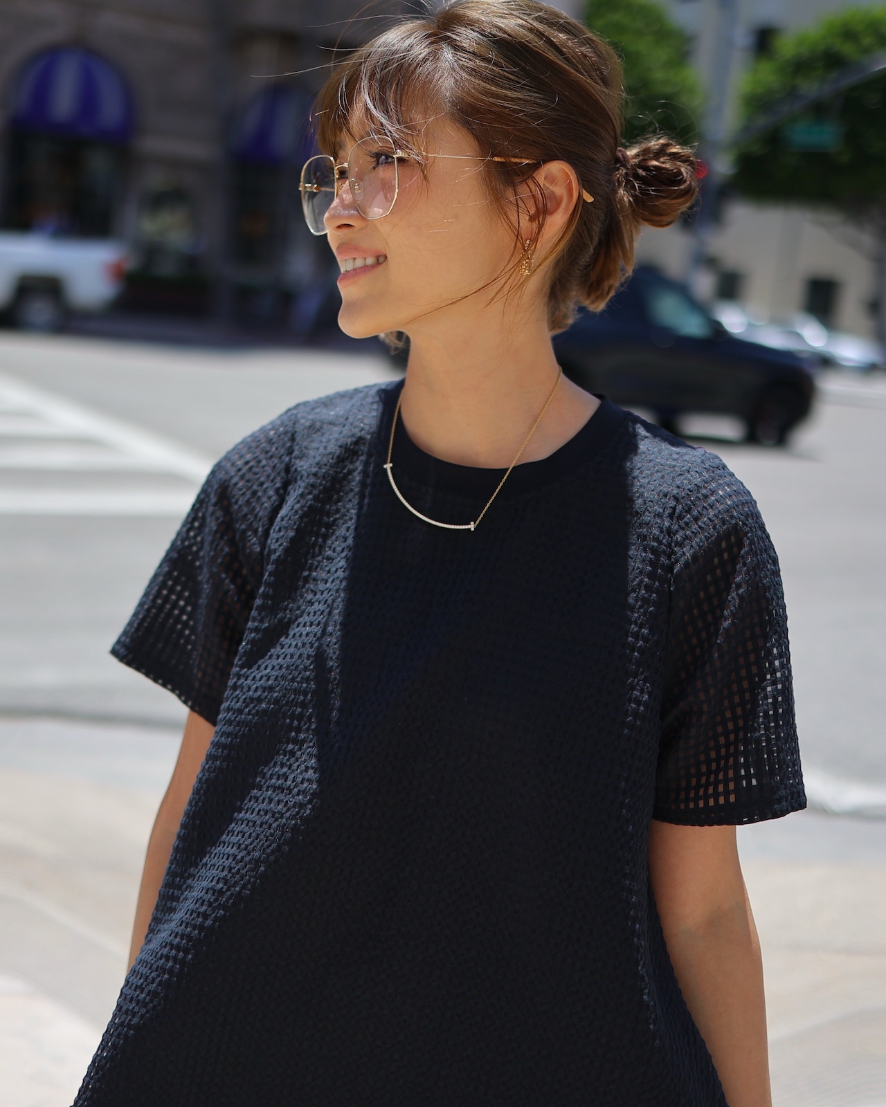 シアー感のある素材を使用しつつも、ボディ部分には裏地を付けているため透け感を気にせず安心してご着用いただけます。