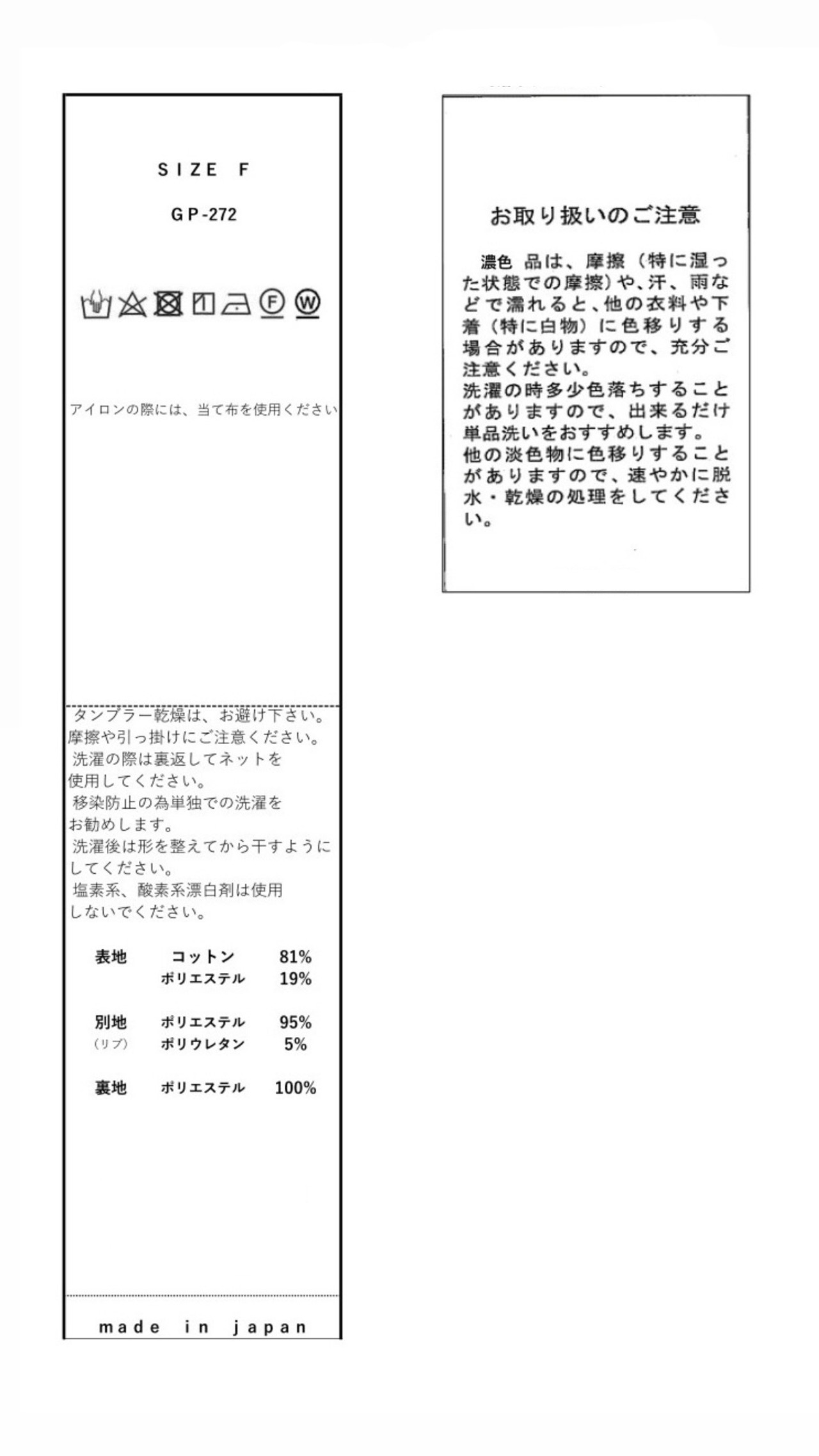 別地(リブ):POLYESTER 95% POLYURETHANE 5%