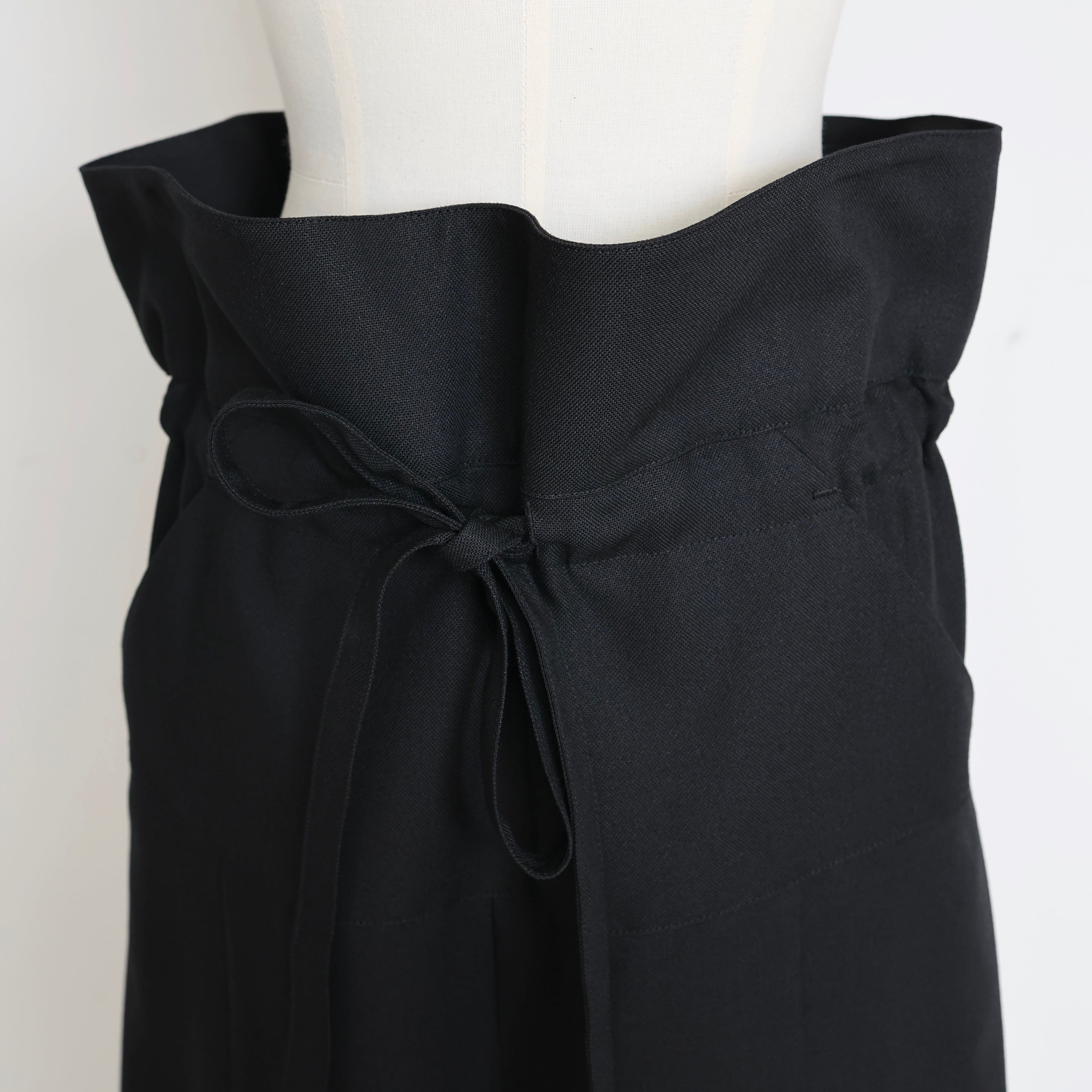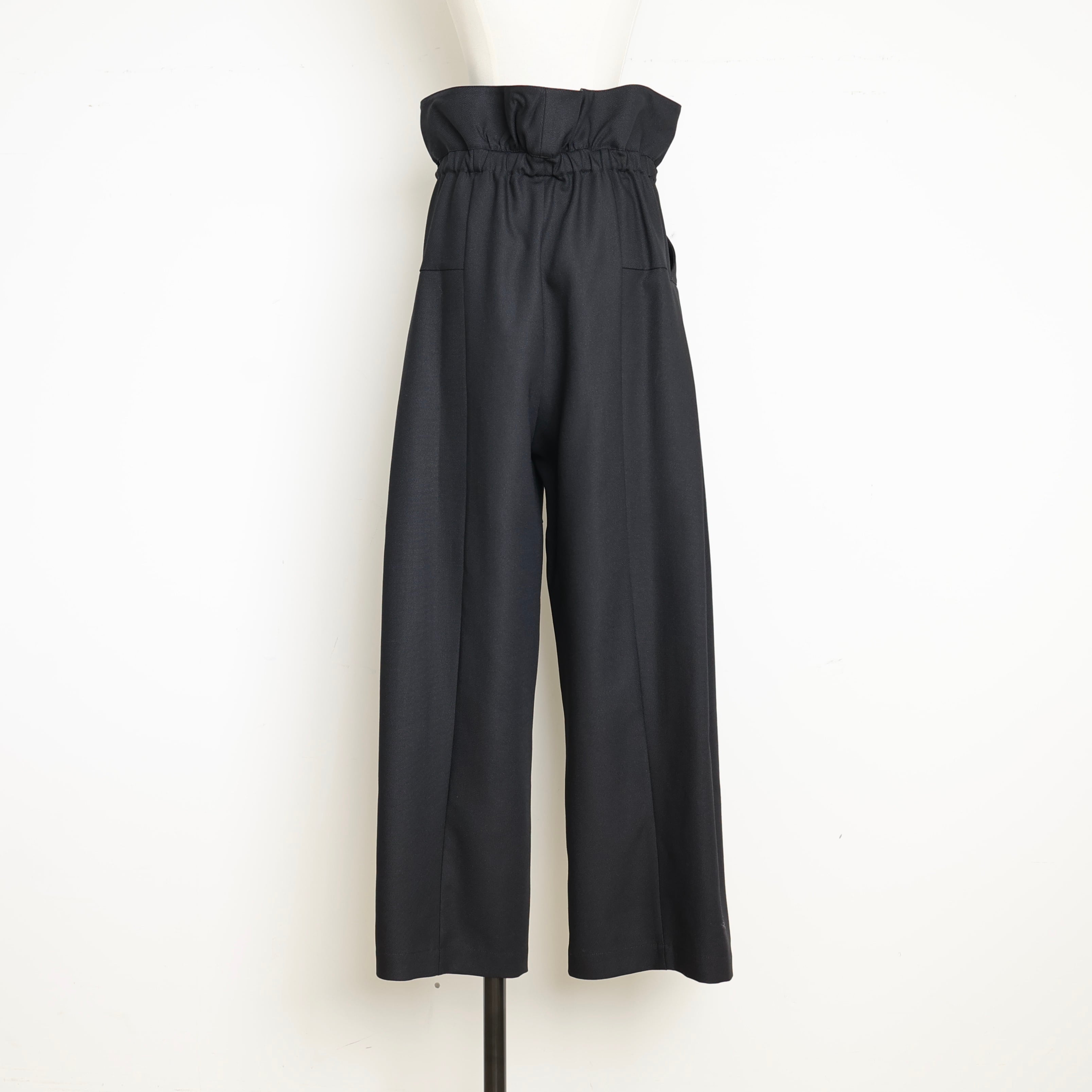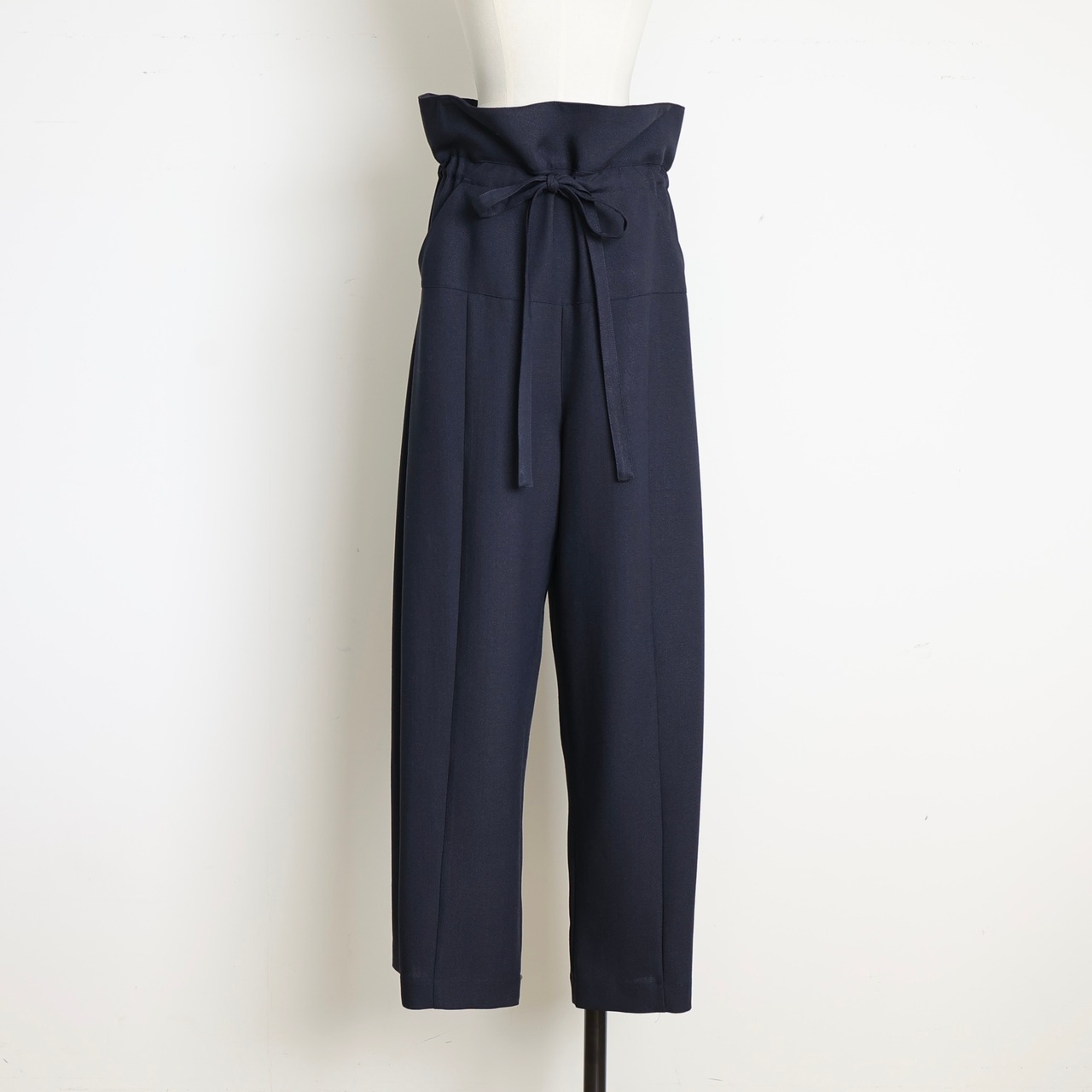 ウエストの紐を絞る事でウエストギャザーを強調でき、それによって生まれるXラインでキュッとウエストマークしてくれる技ありパンツ。