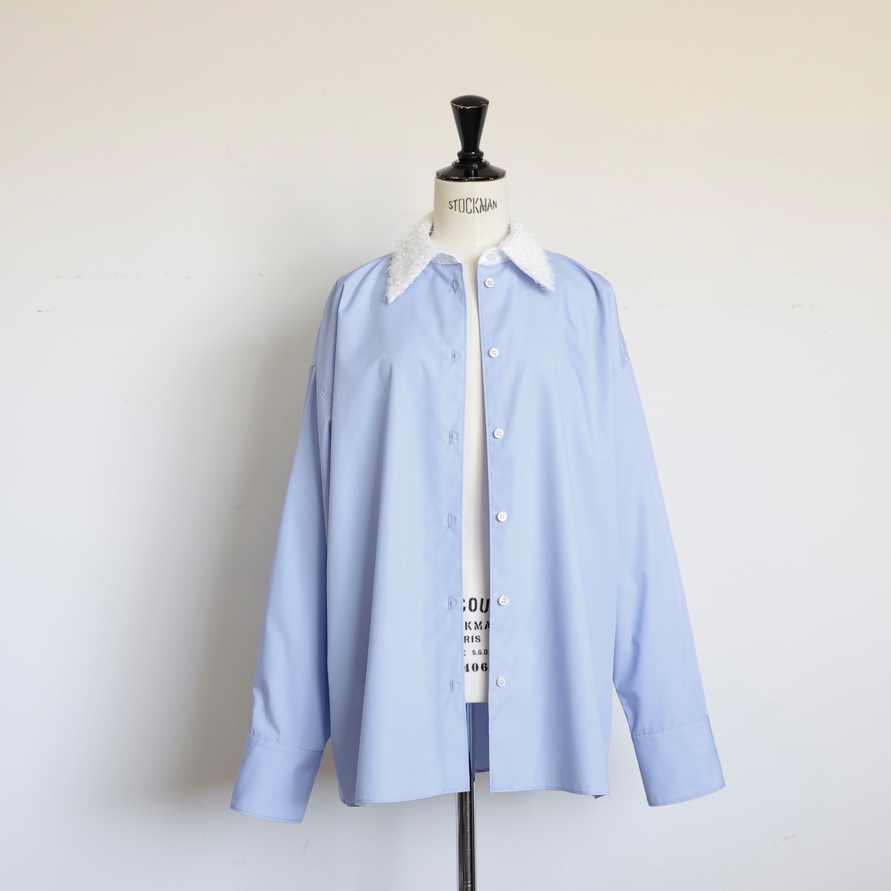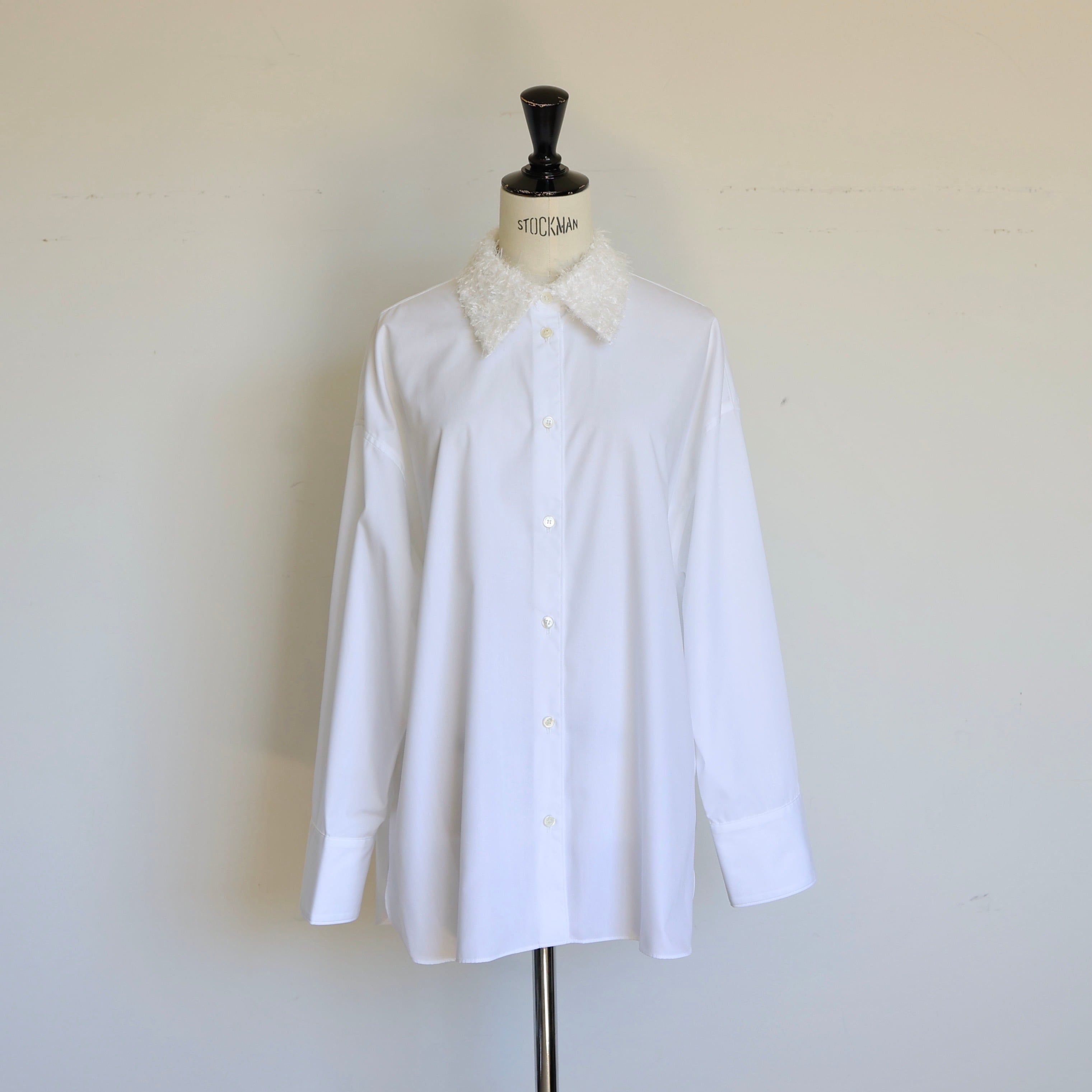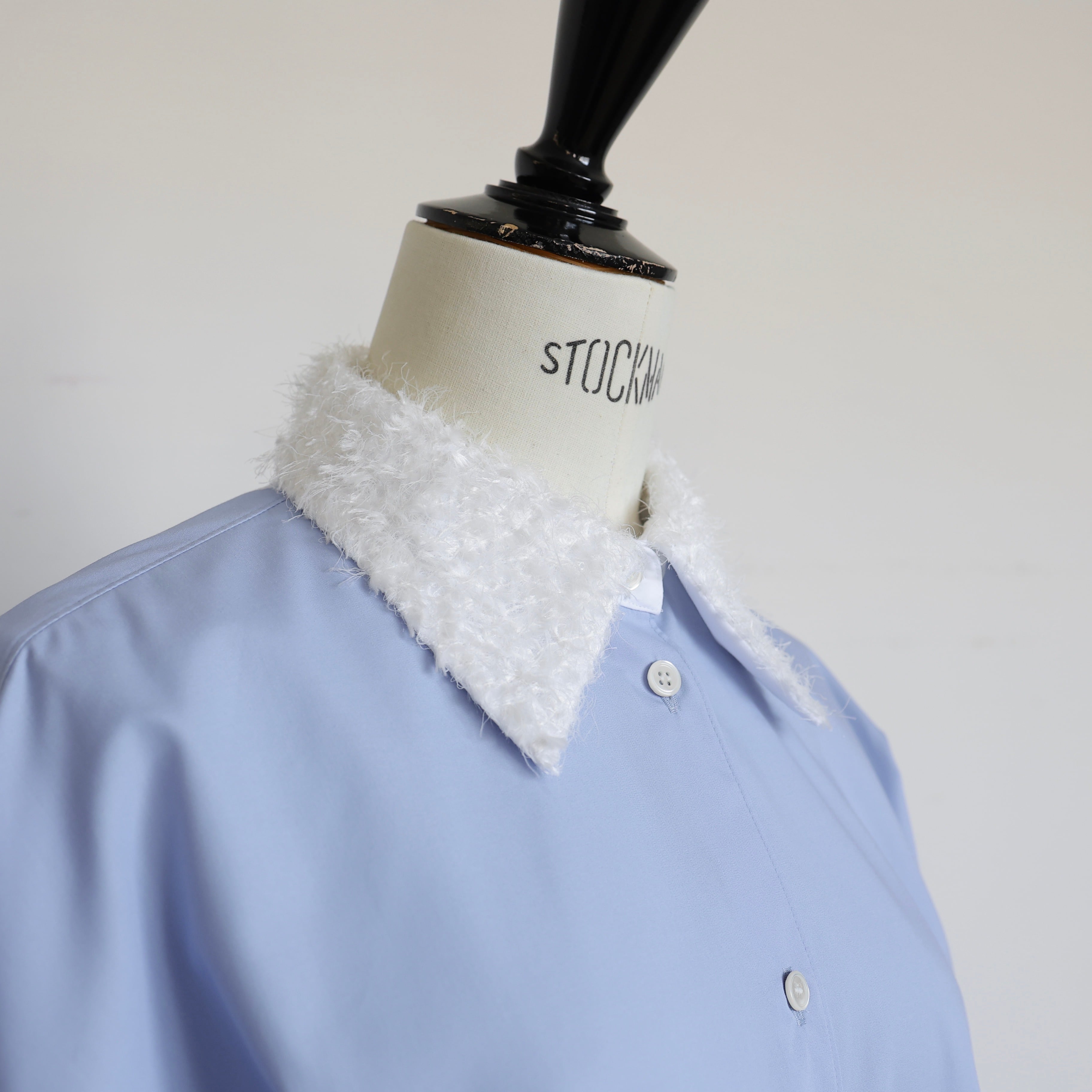 柔らかな羽のようなフェザー襟が顔まわりを華やかに見せる“スノーブラウスプレーン”