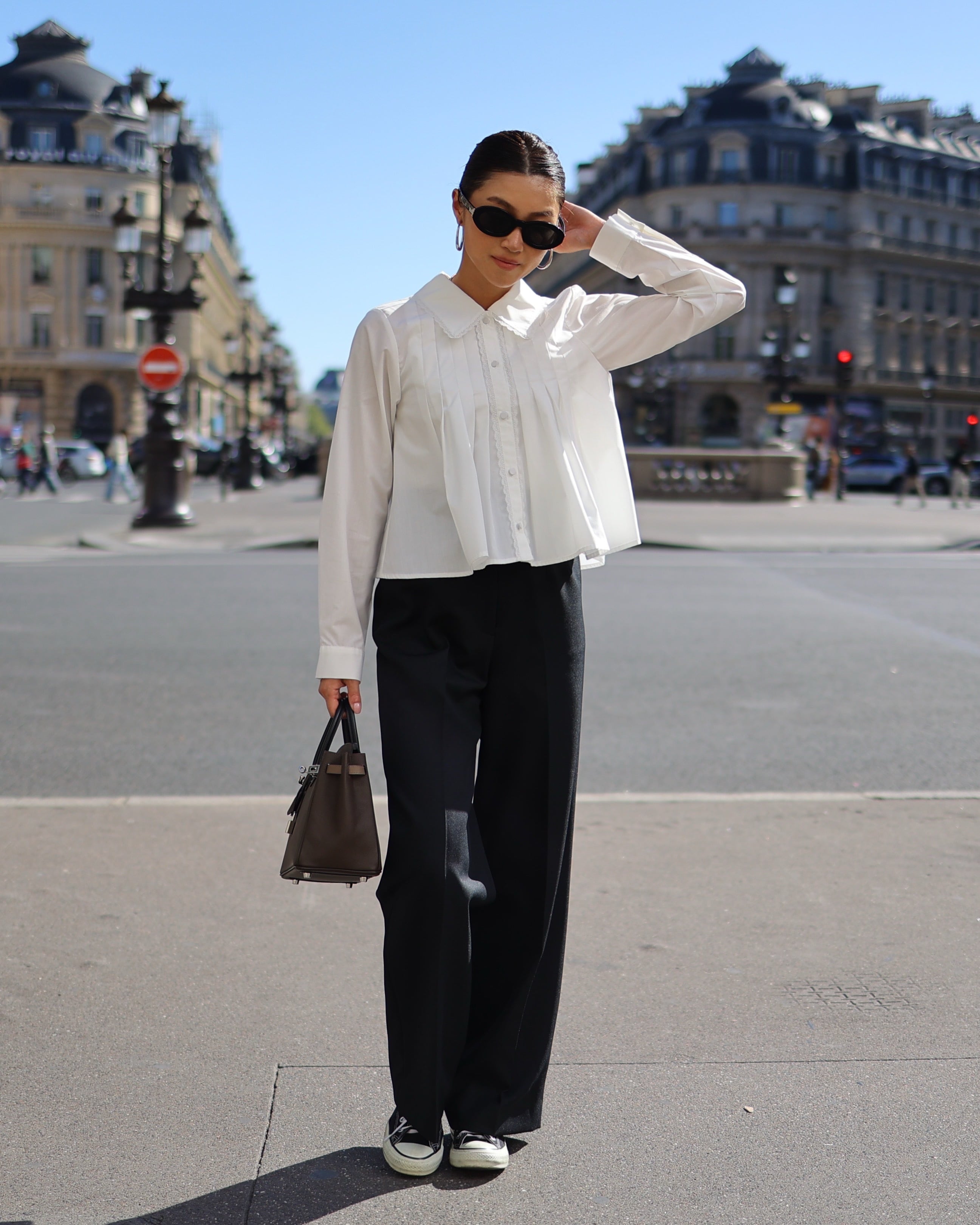 ディテールが際立つ、洗練された”タックロングスリーブブラウス”