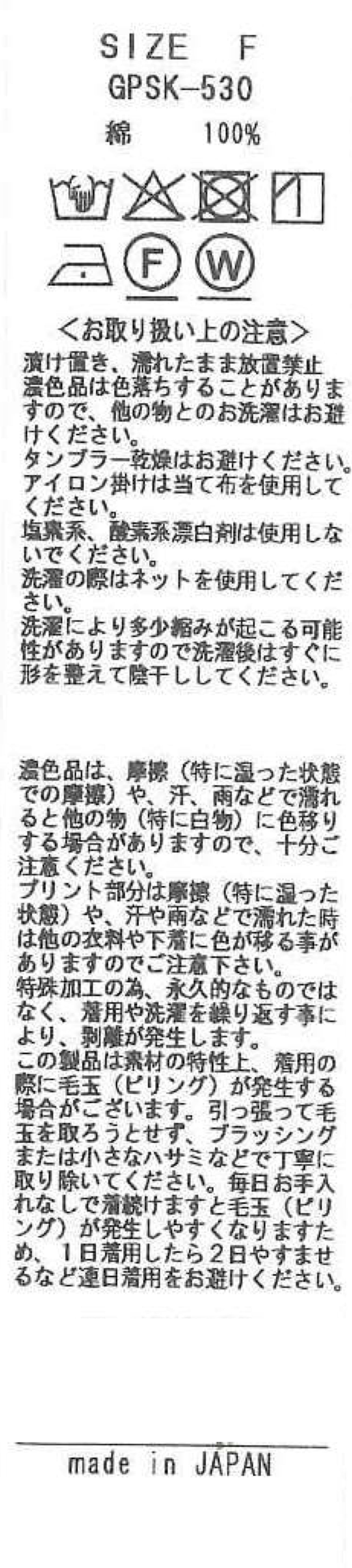 ※7.プリント部分は摩擦(特に湿った状態)や、汗や雨などで濡れると他の衣類や下着(特に白物)に色移りする場合がありますのでご注意ください。