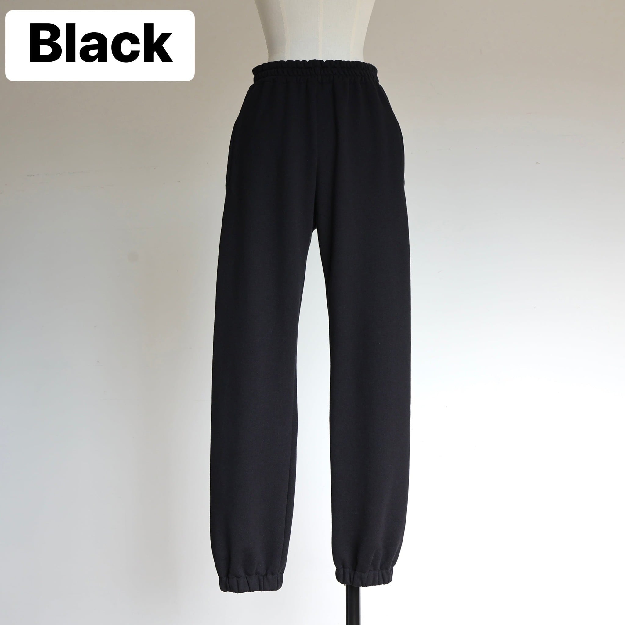 一見シンプルなスウェットパンツの印象だが、履くと実感いただける旬なシルエットに、美脚効果にも期待◎