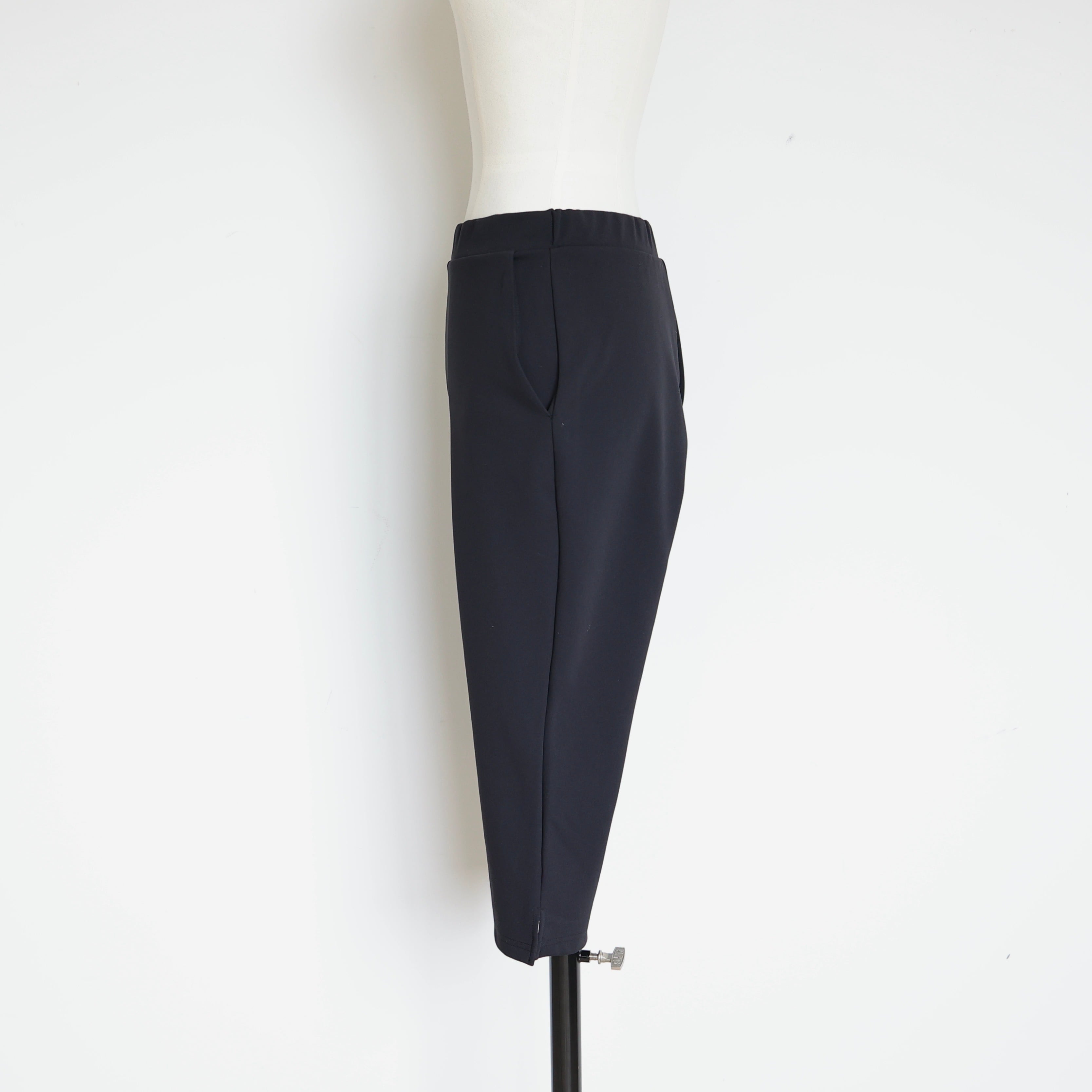 スッキリとした印象ながら、伸縮性がありストレスフリーな穿き心地がポイントです。カプリ丈がスタイルに新鮮さを与え、デイリーに取り入れやすい一本です。