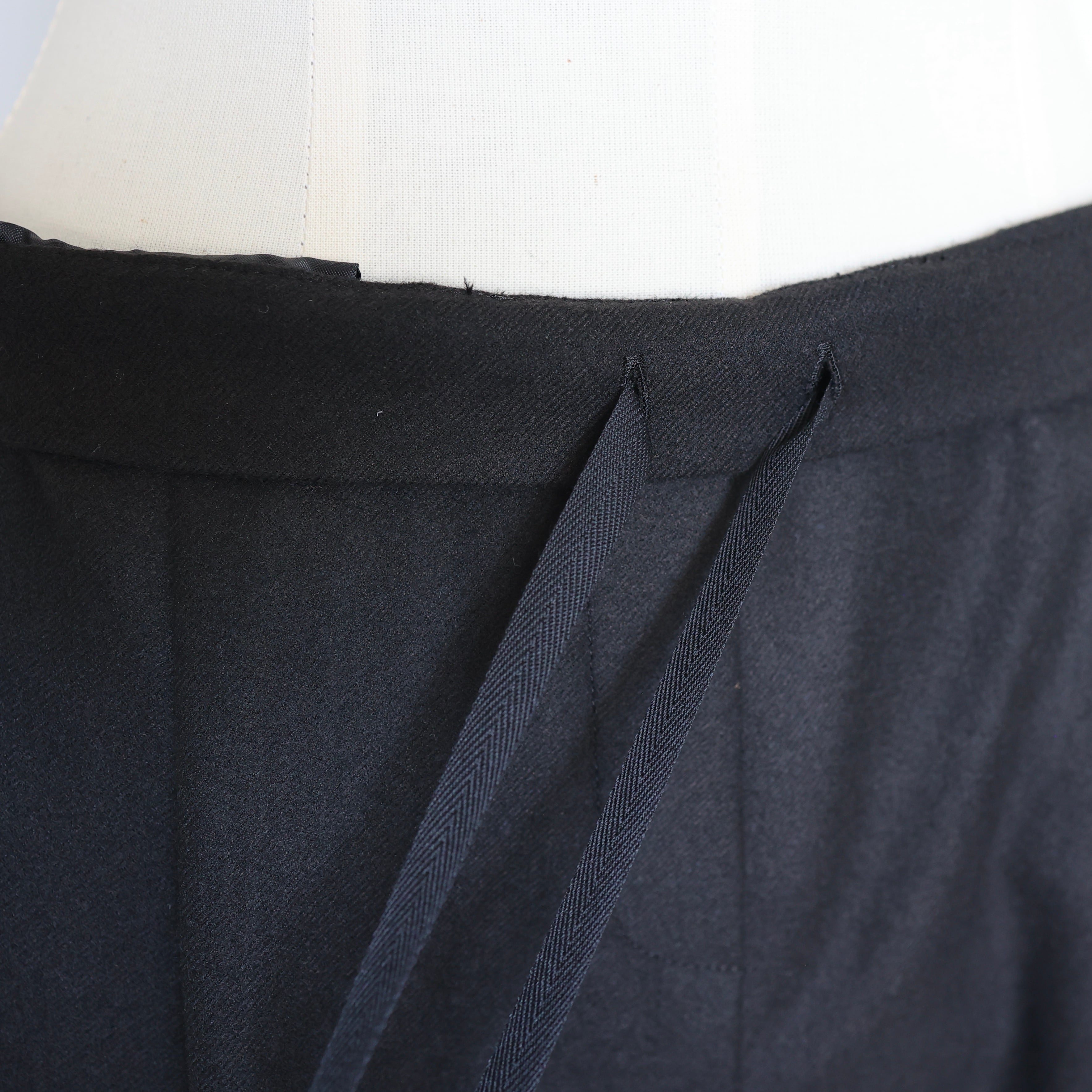 フロントに入ったタックが縦のラインを強調し、腰まわりに自然な立体感を生み出す”タックストレートスラックス”