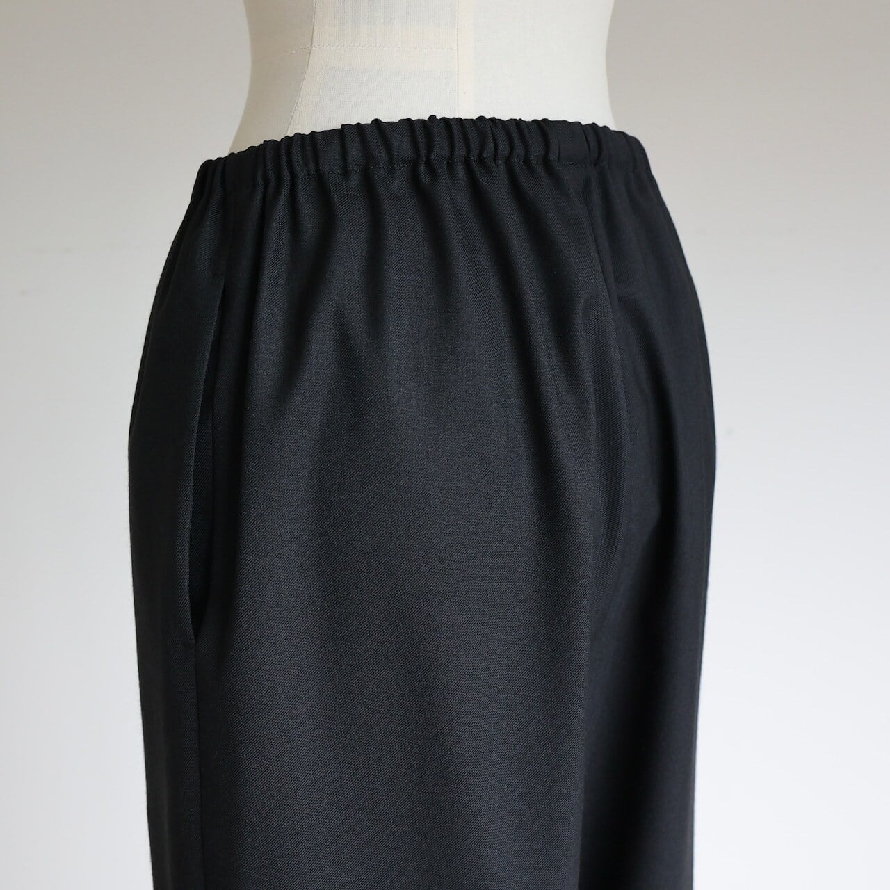 ストンと落ちるシルエットが脚のラインをひろわず、すっきりとした印象と快適な穿き心地を両立。