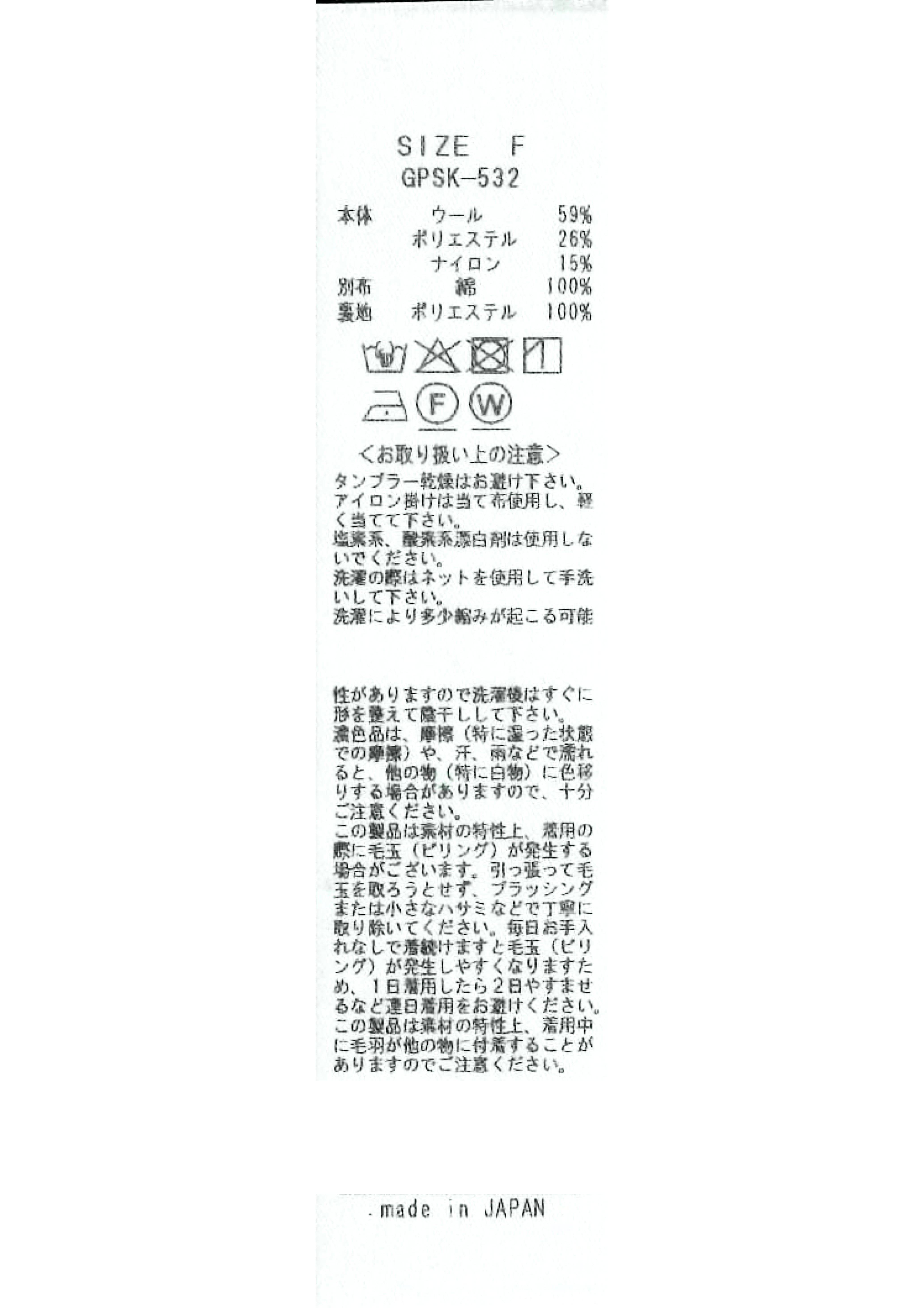 本体:ウール 59% ポリエステル 26% ナイロン 15%