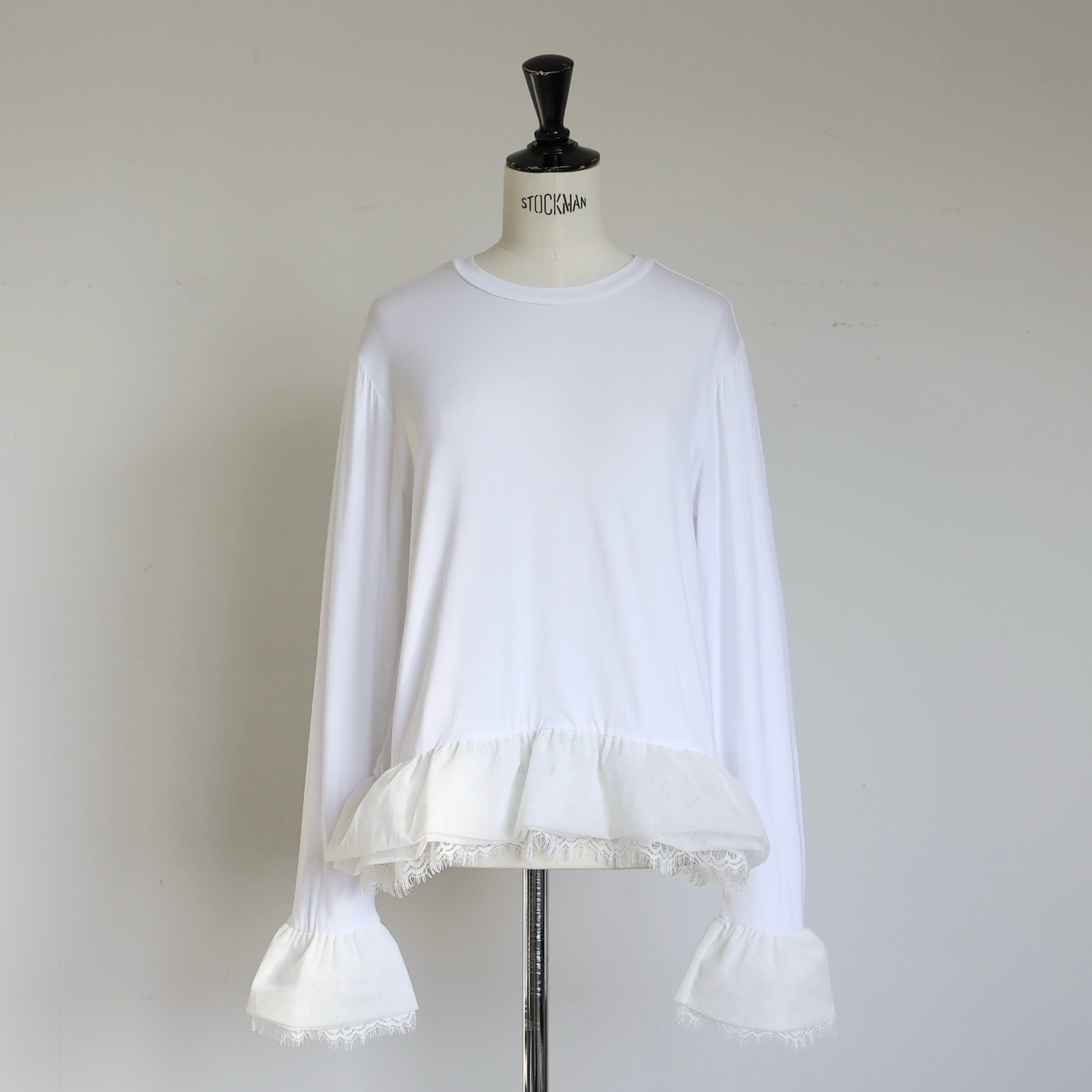 裾と手元のレース&チュールが上品見えする”マッチロンTee ショート”