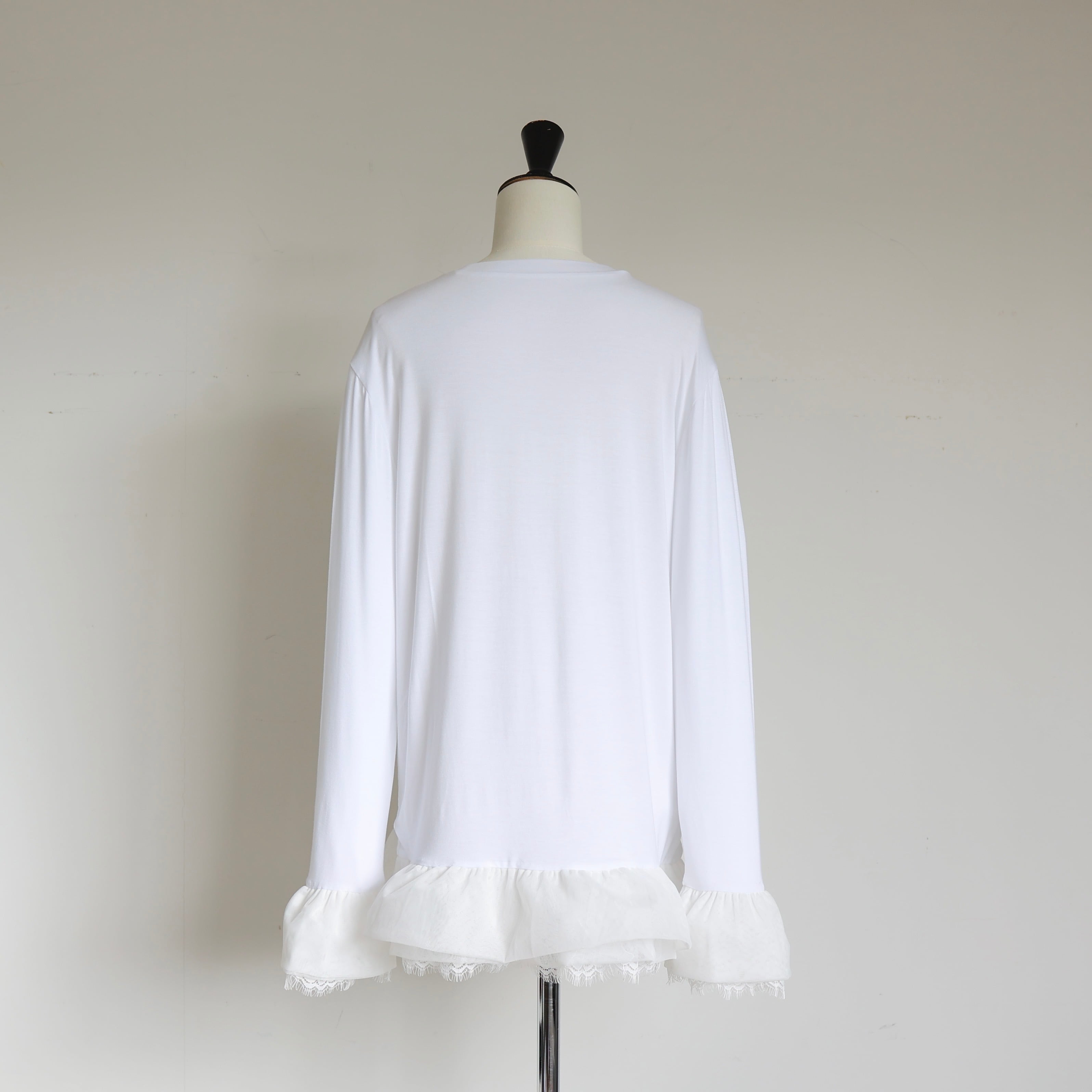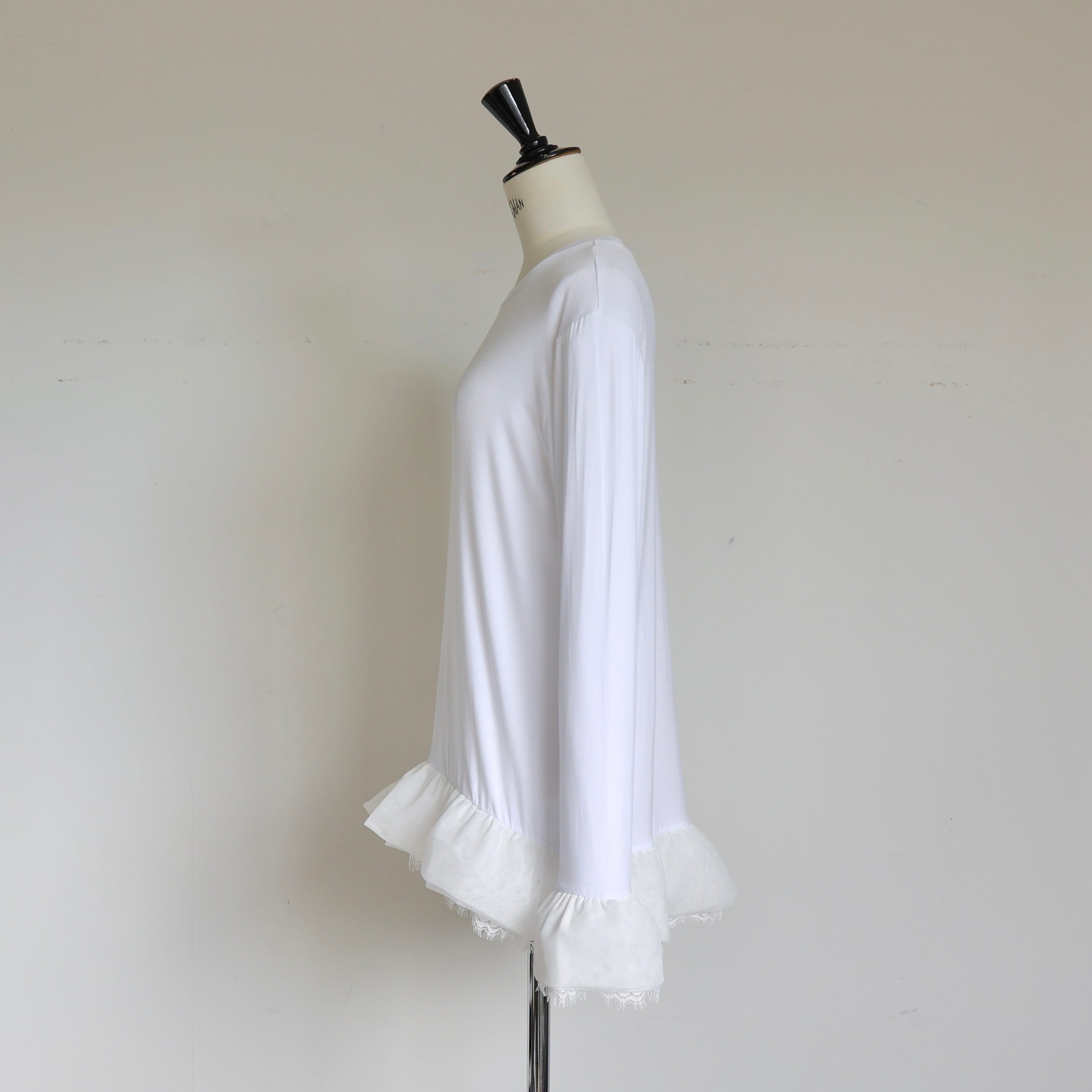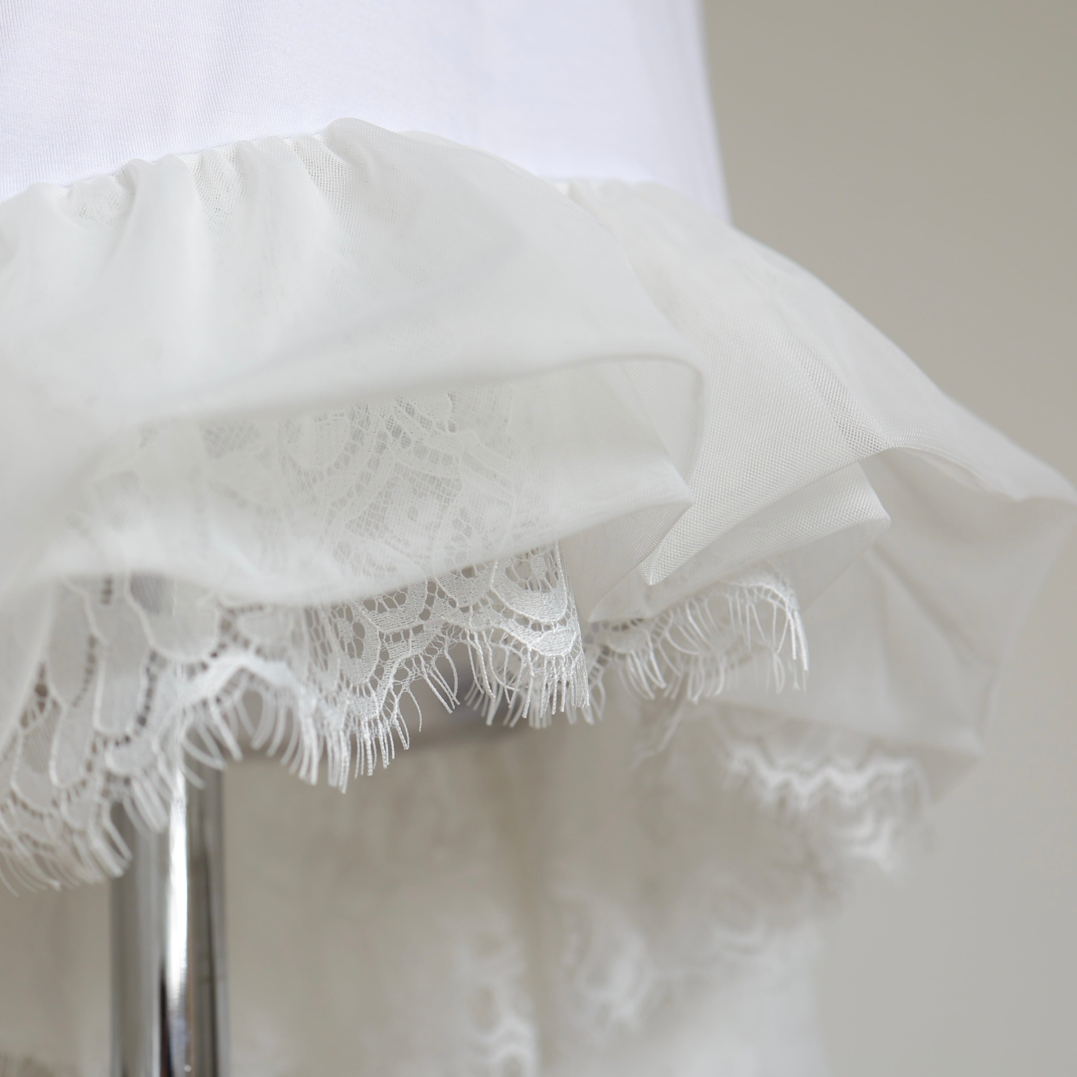 裾と手元のレース&チュールが上品見えする”マッチロンTee ロング”