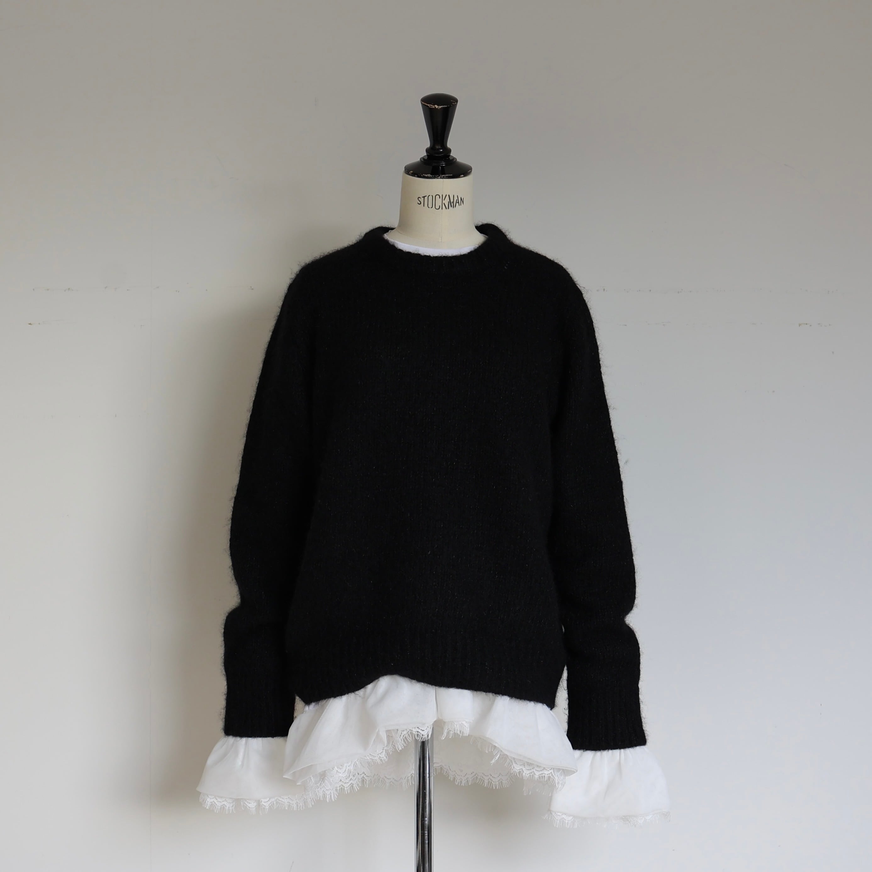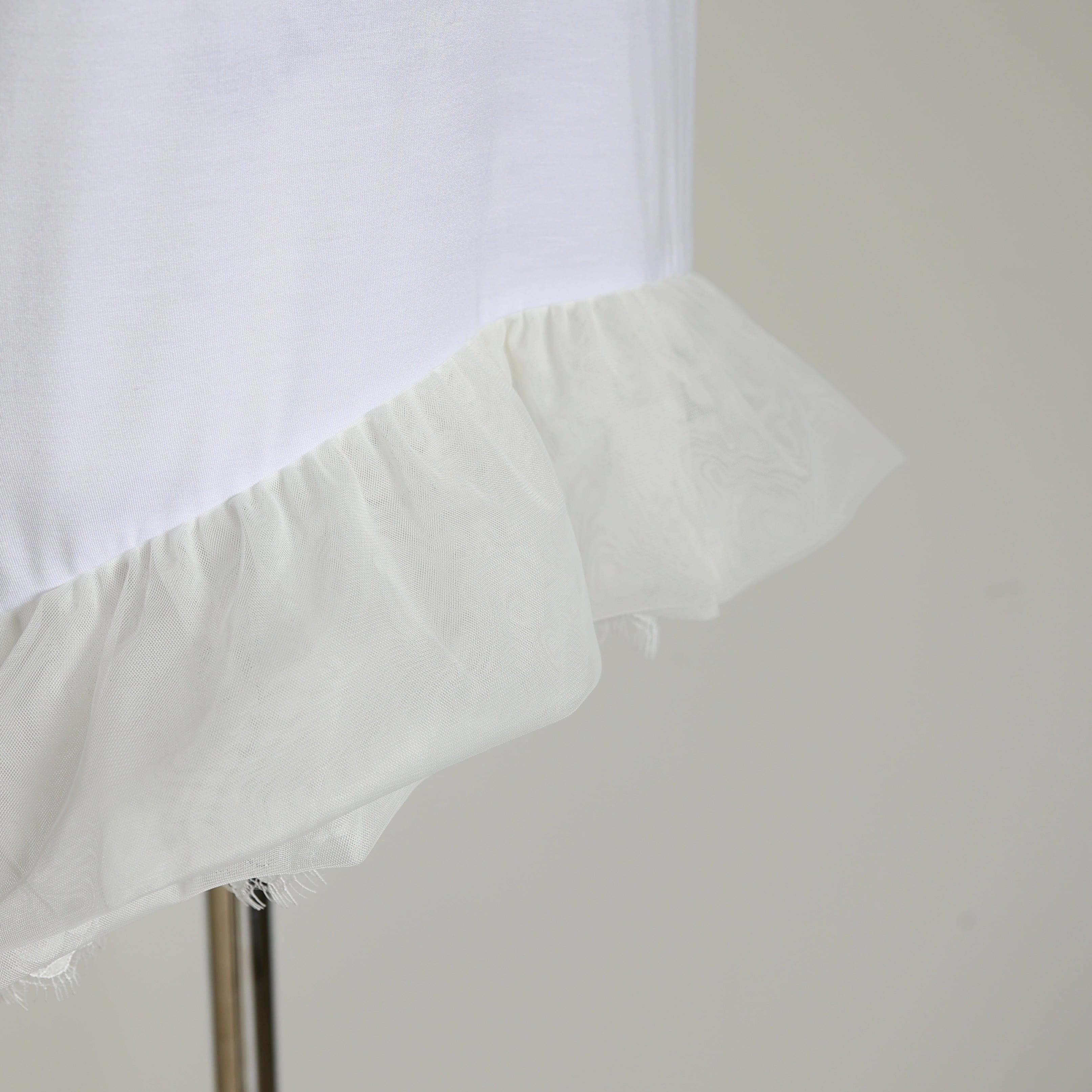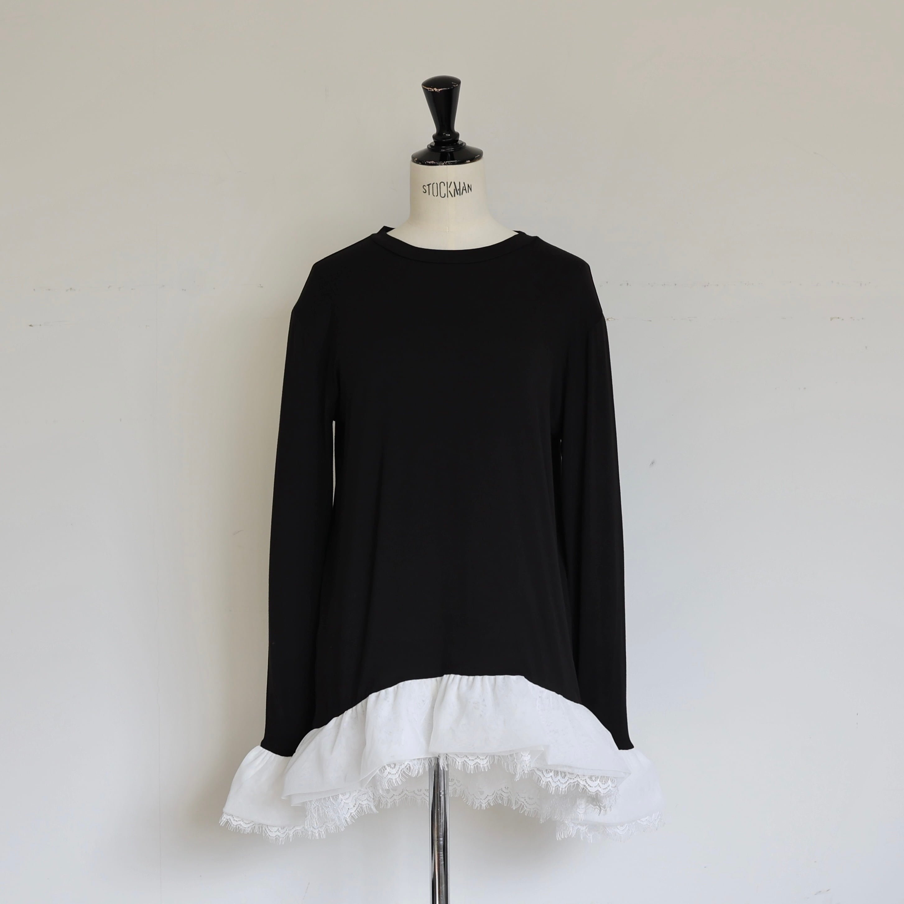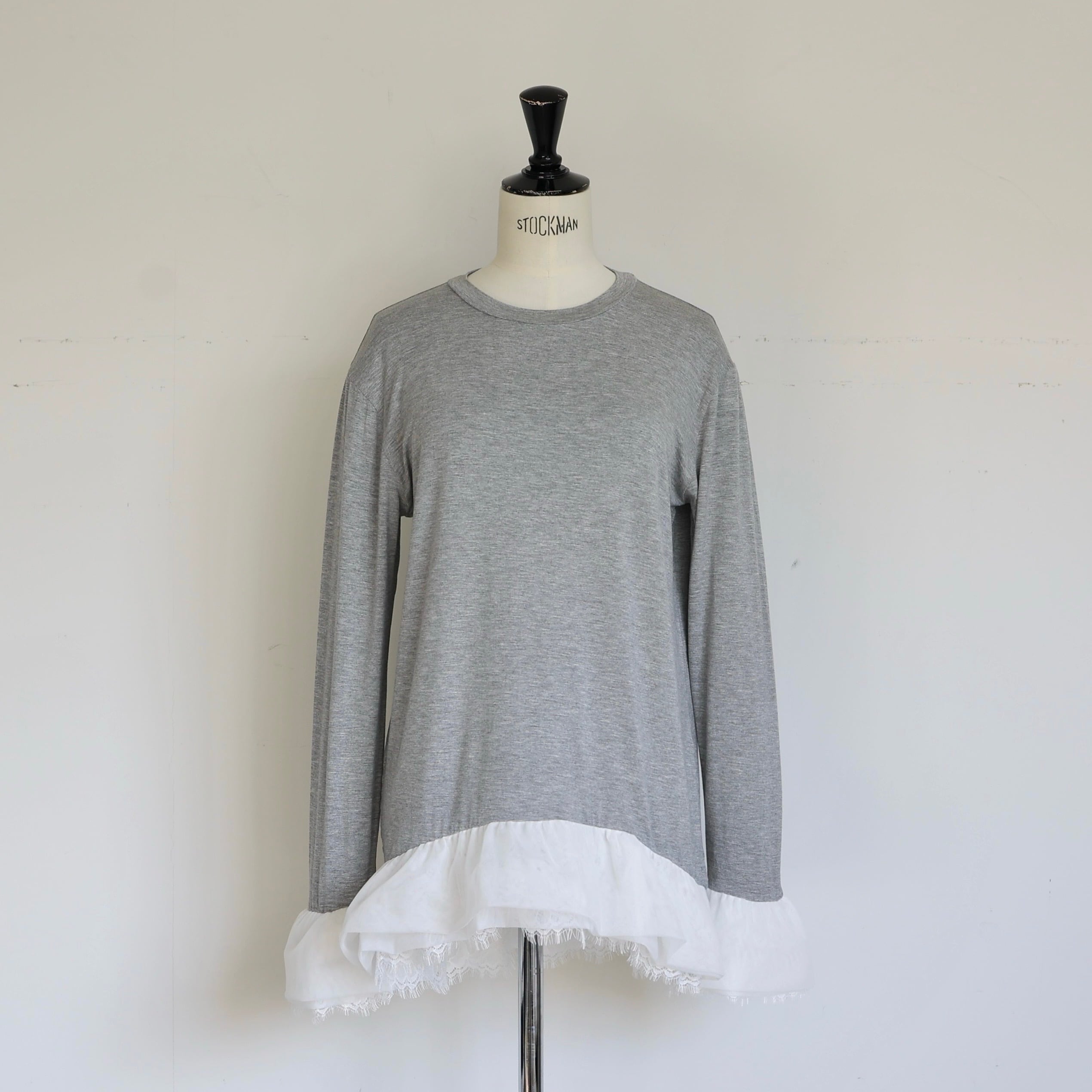 裾と手元のレース&チュールが上品見えする”マッチロンTee ロング”