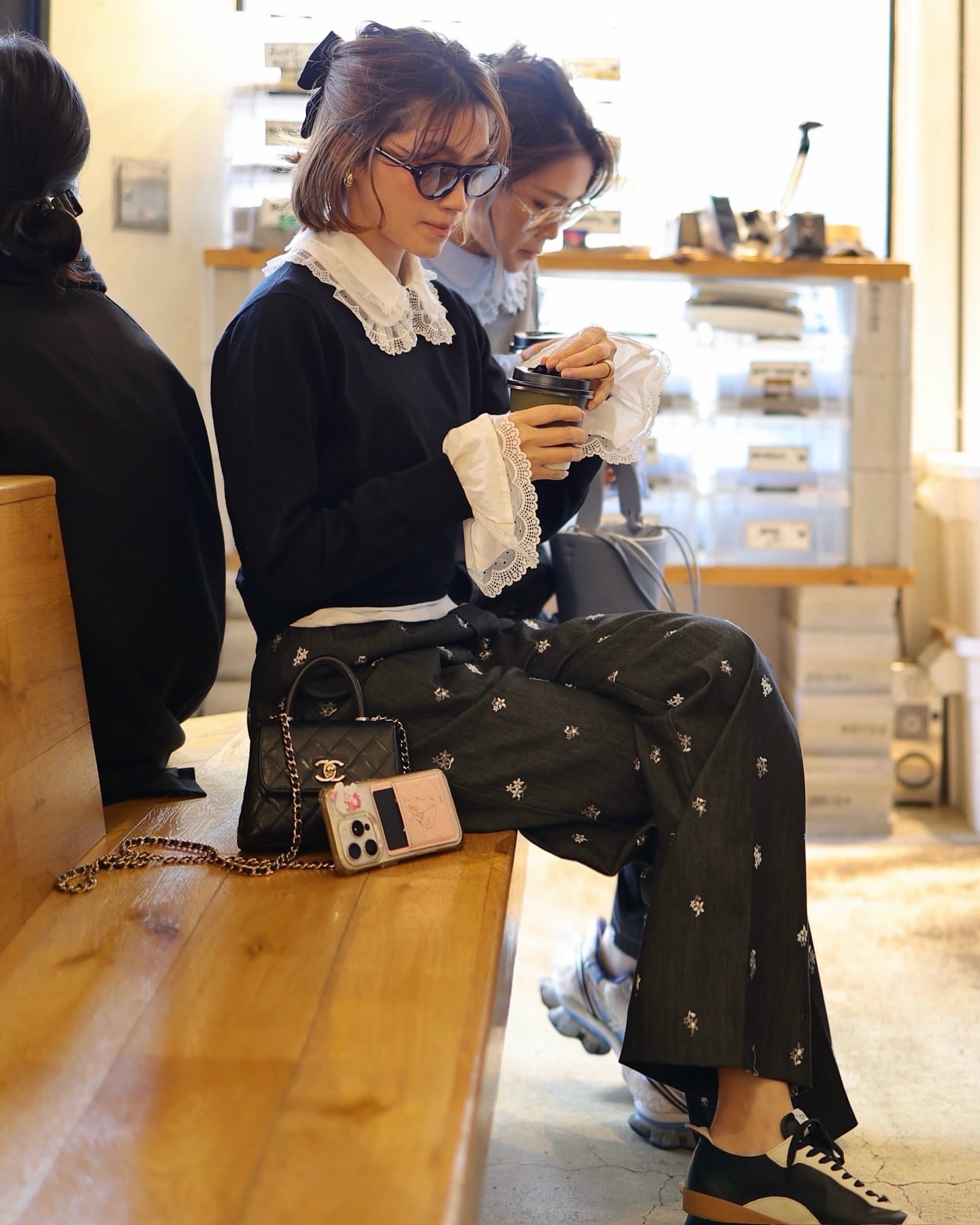 ・すべて外したミニマルなニットスタイル