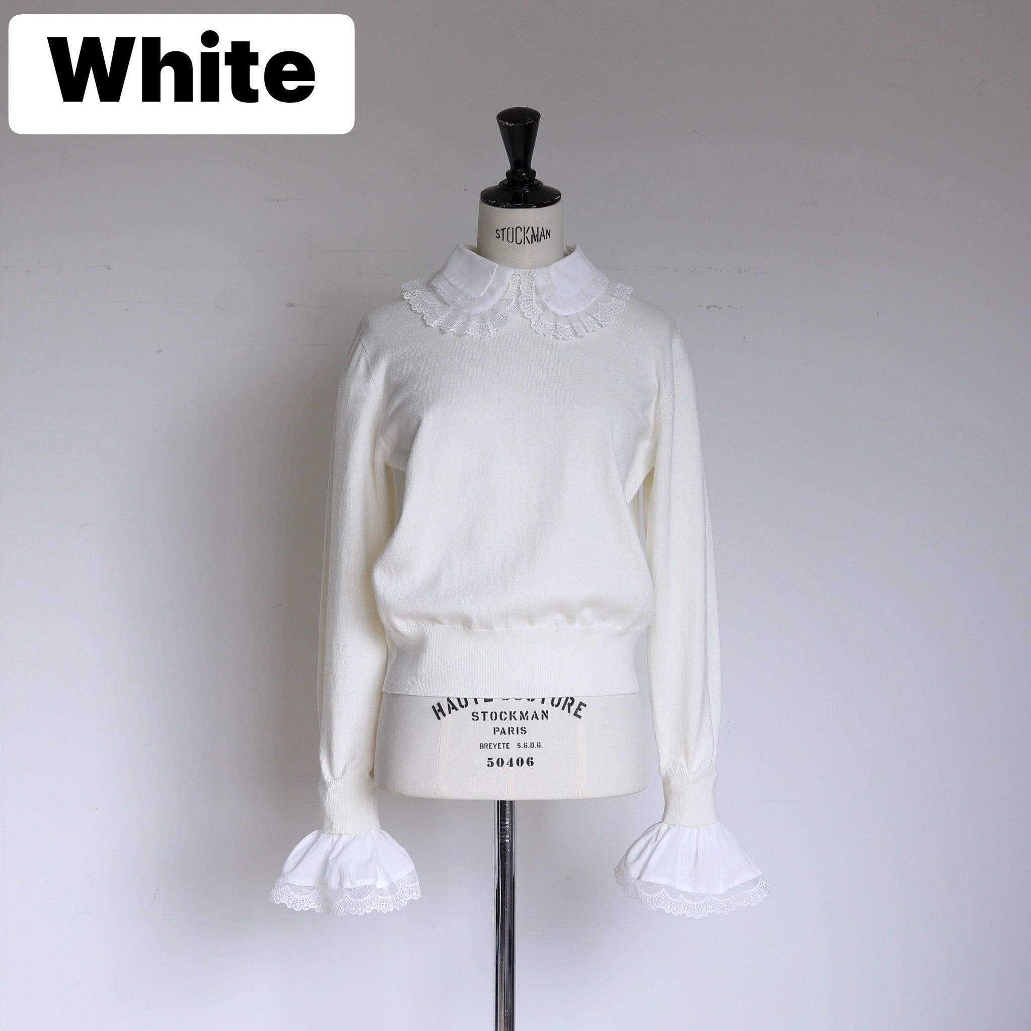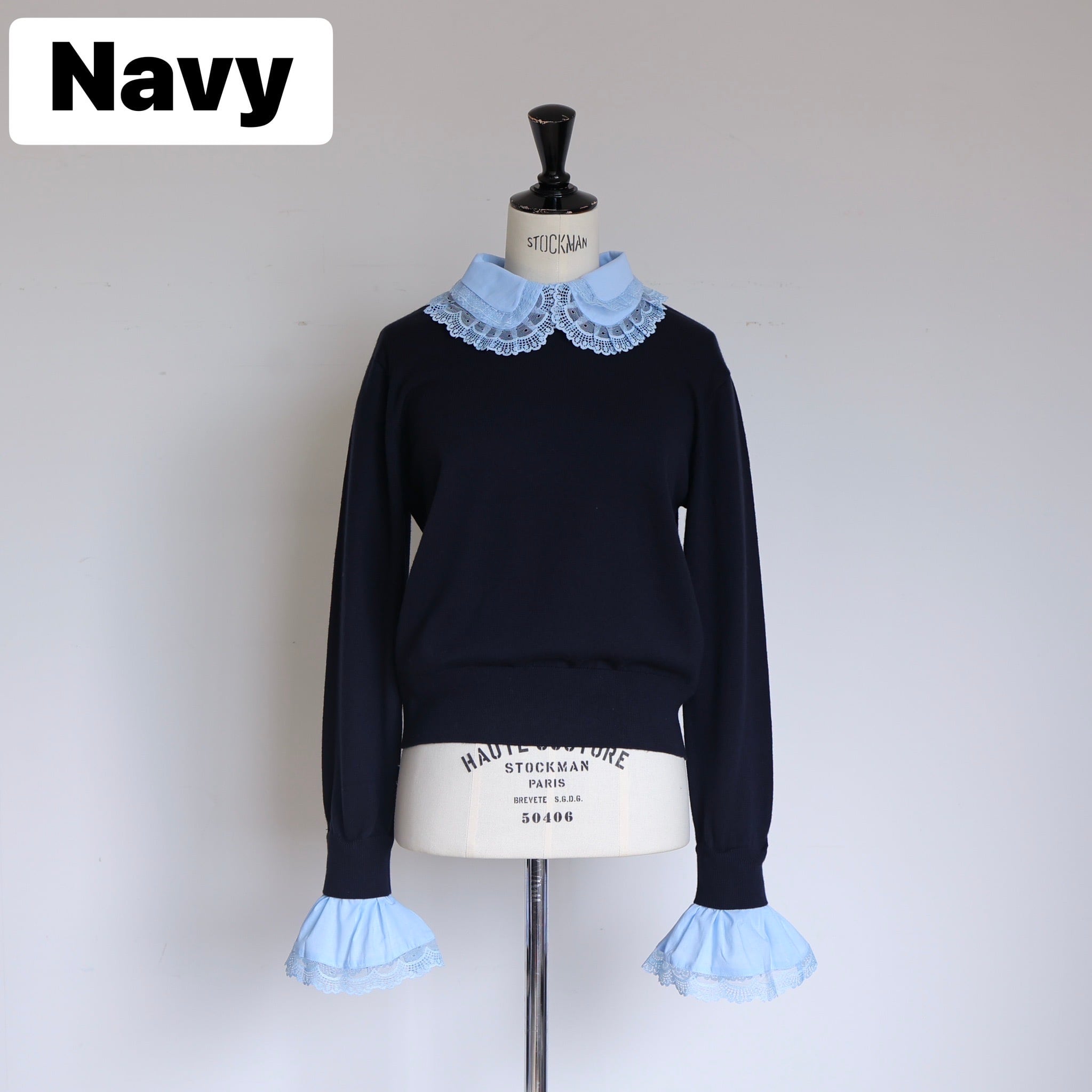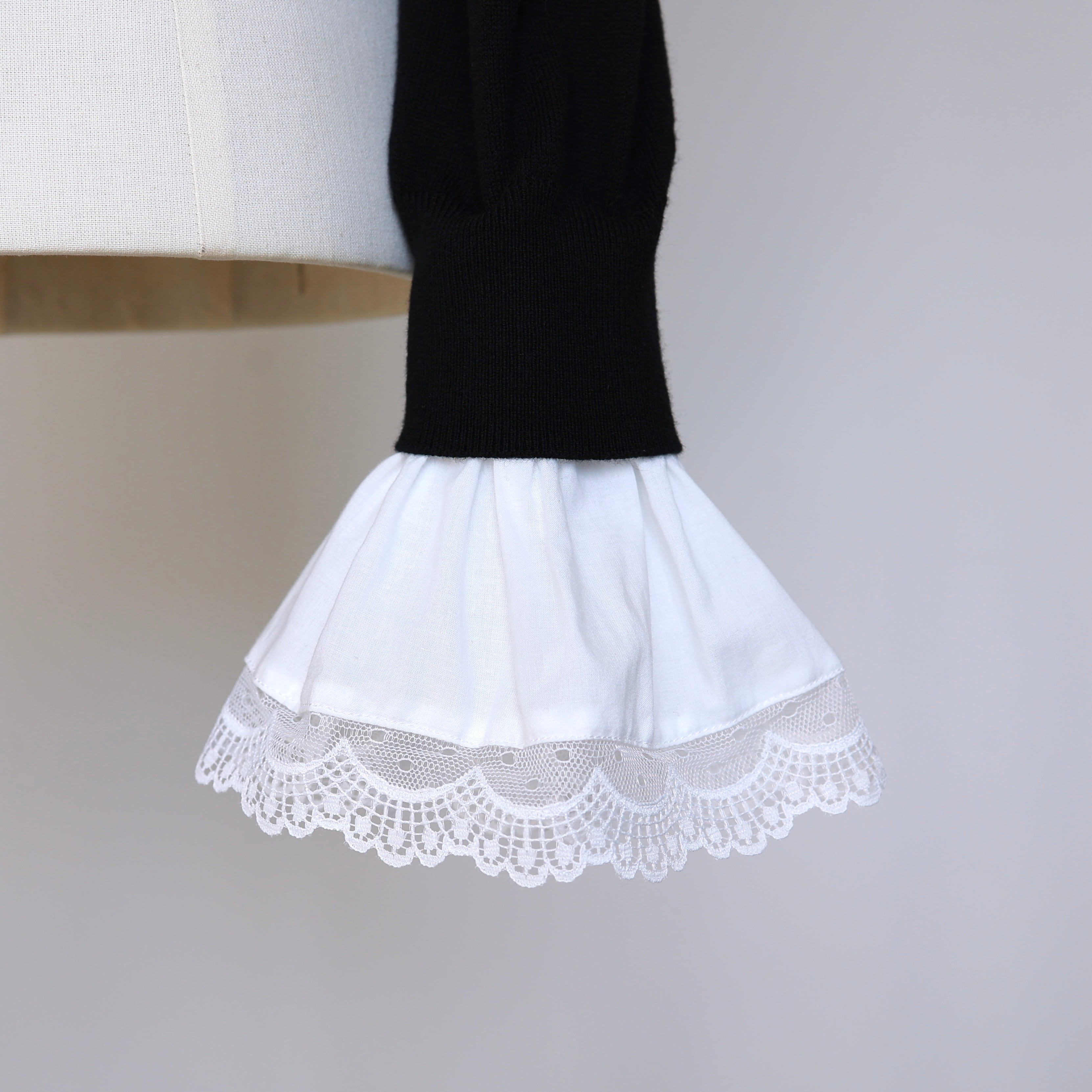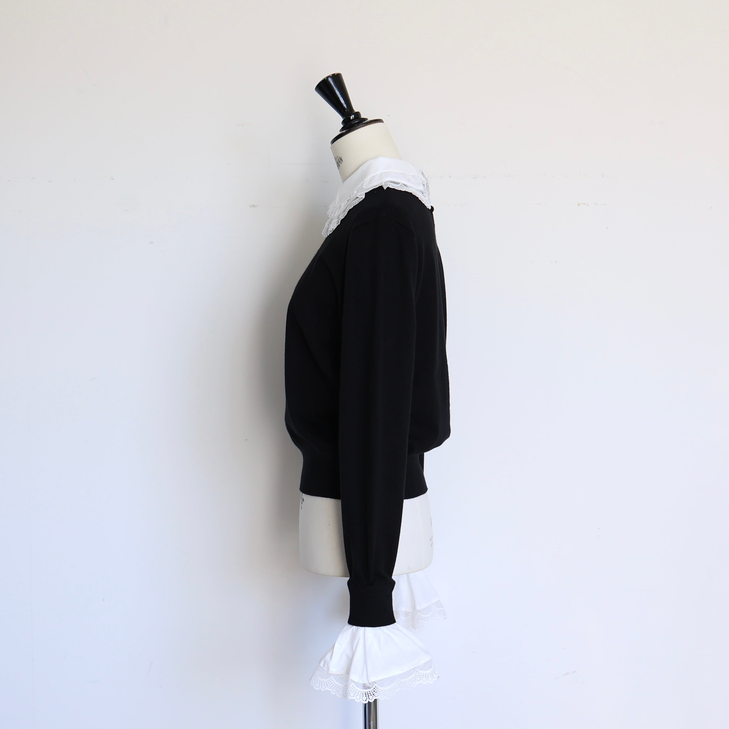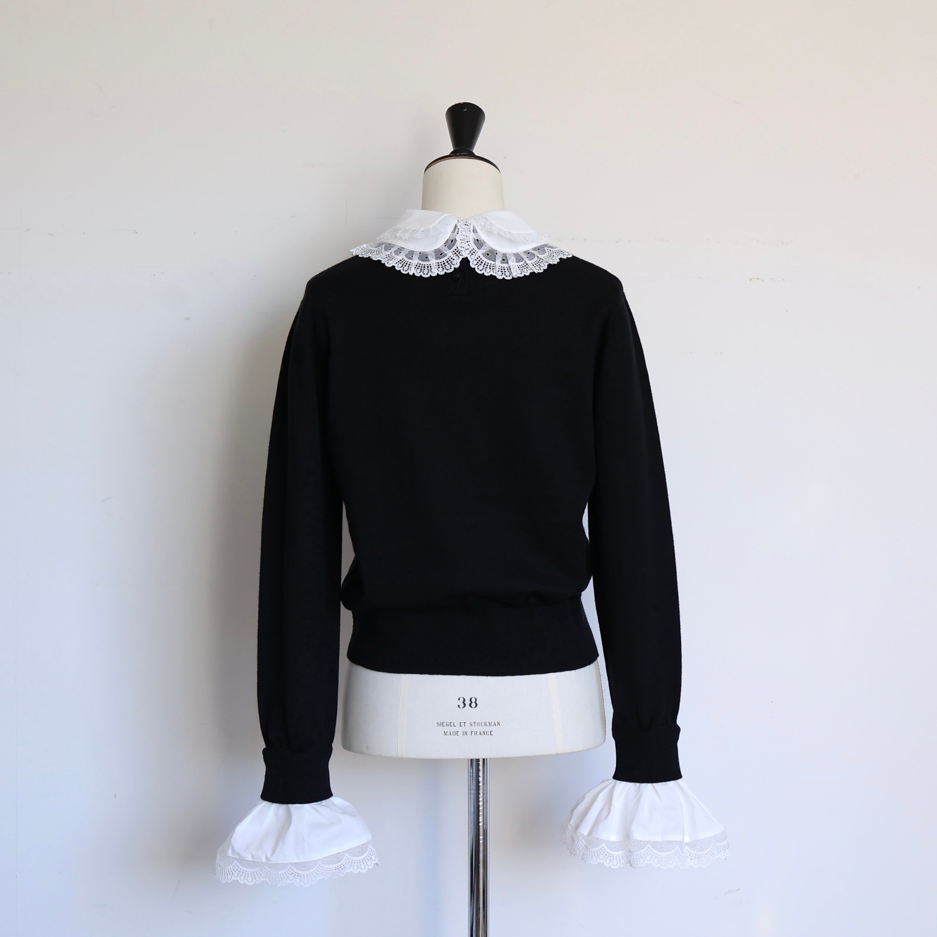 ミニマルなニットをベースに取り外し可能なレースの襟とカフスを組み合わせることで、スタイリングに合わせた多彩な表情を楽しめる一枚に仕上げました。