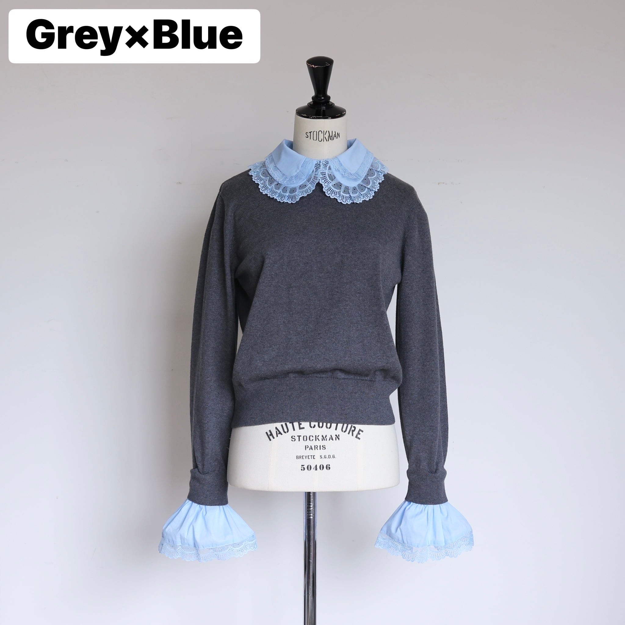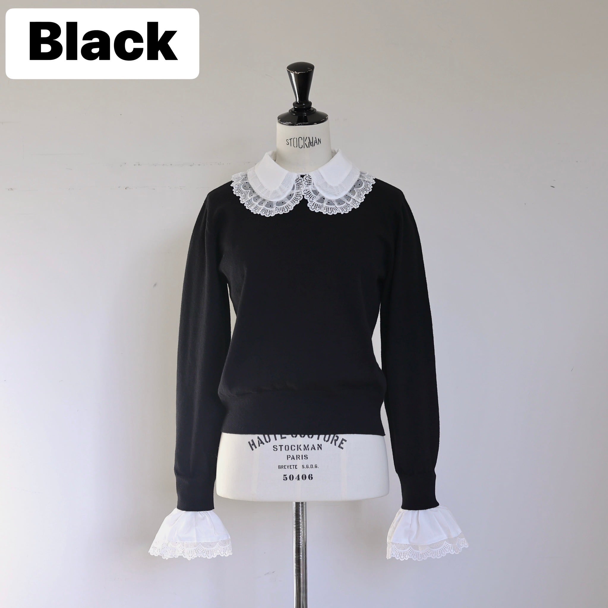 繊細なレースの襟とカフスが印象的な4Way仕様の"レースアクセントニット"