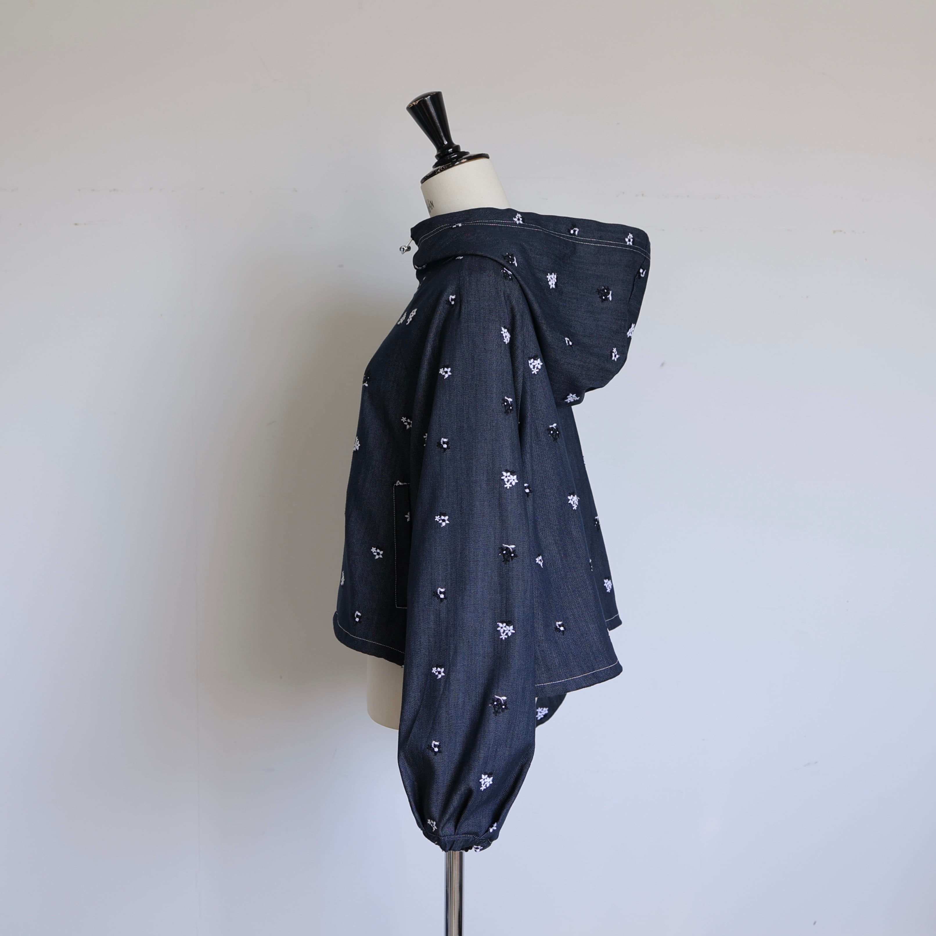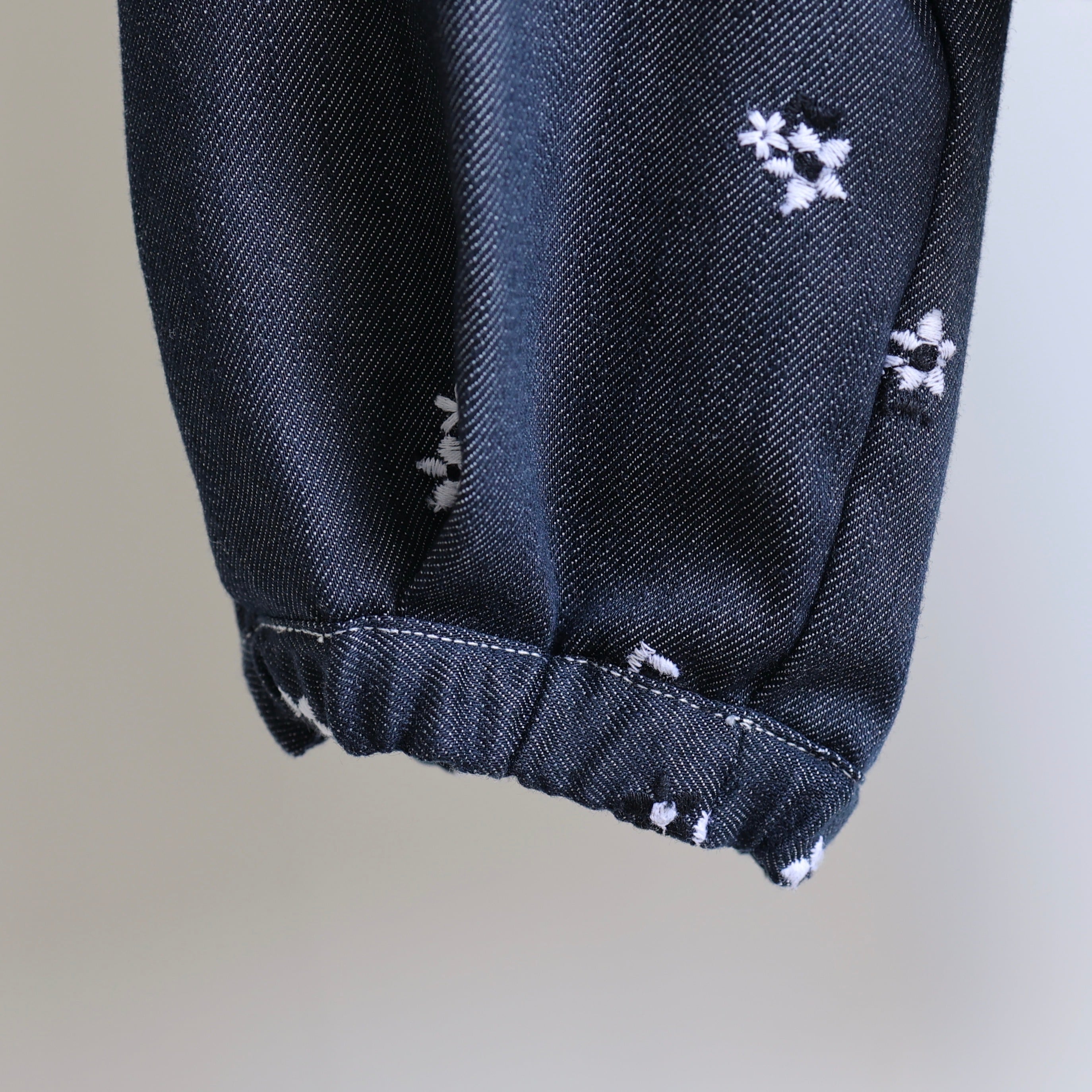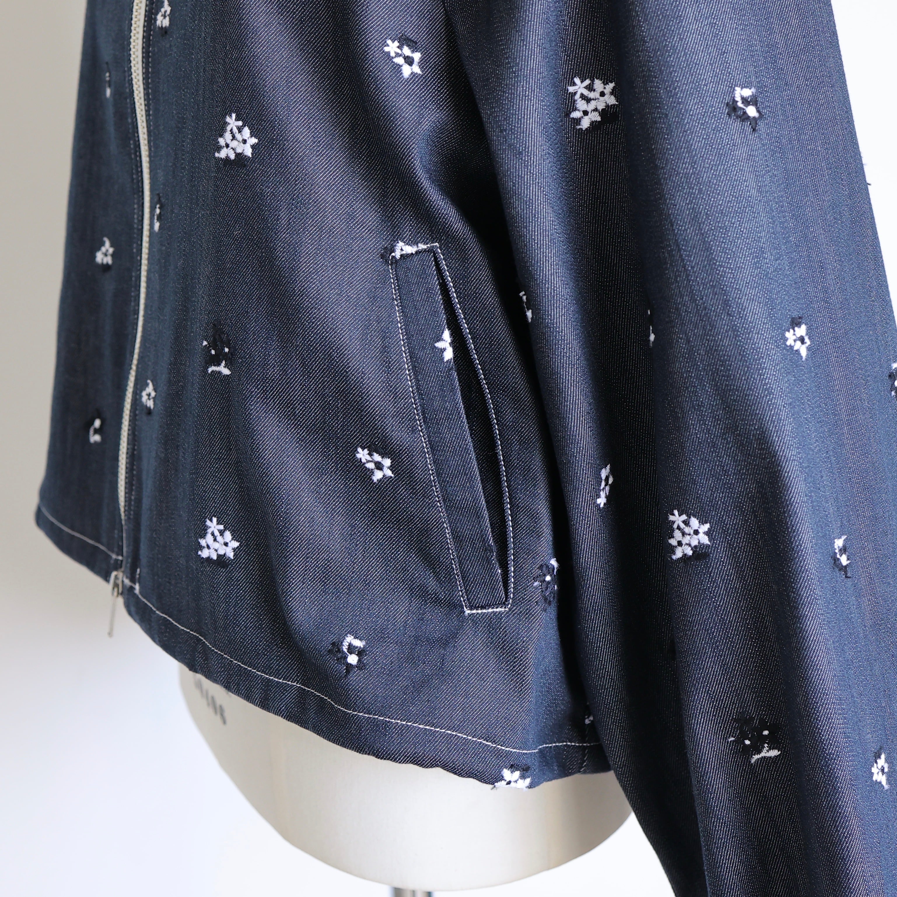 デニム素材でありながら柔らかで軽く、オリジナルフラワー刺繍がさりげなく華やぐ、快適な着心地の一枚です。