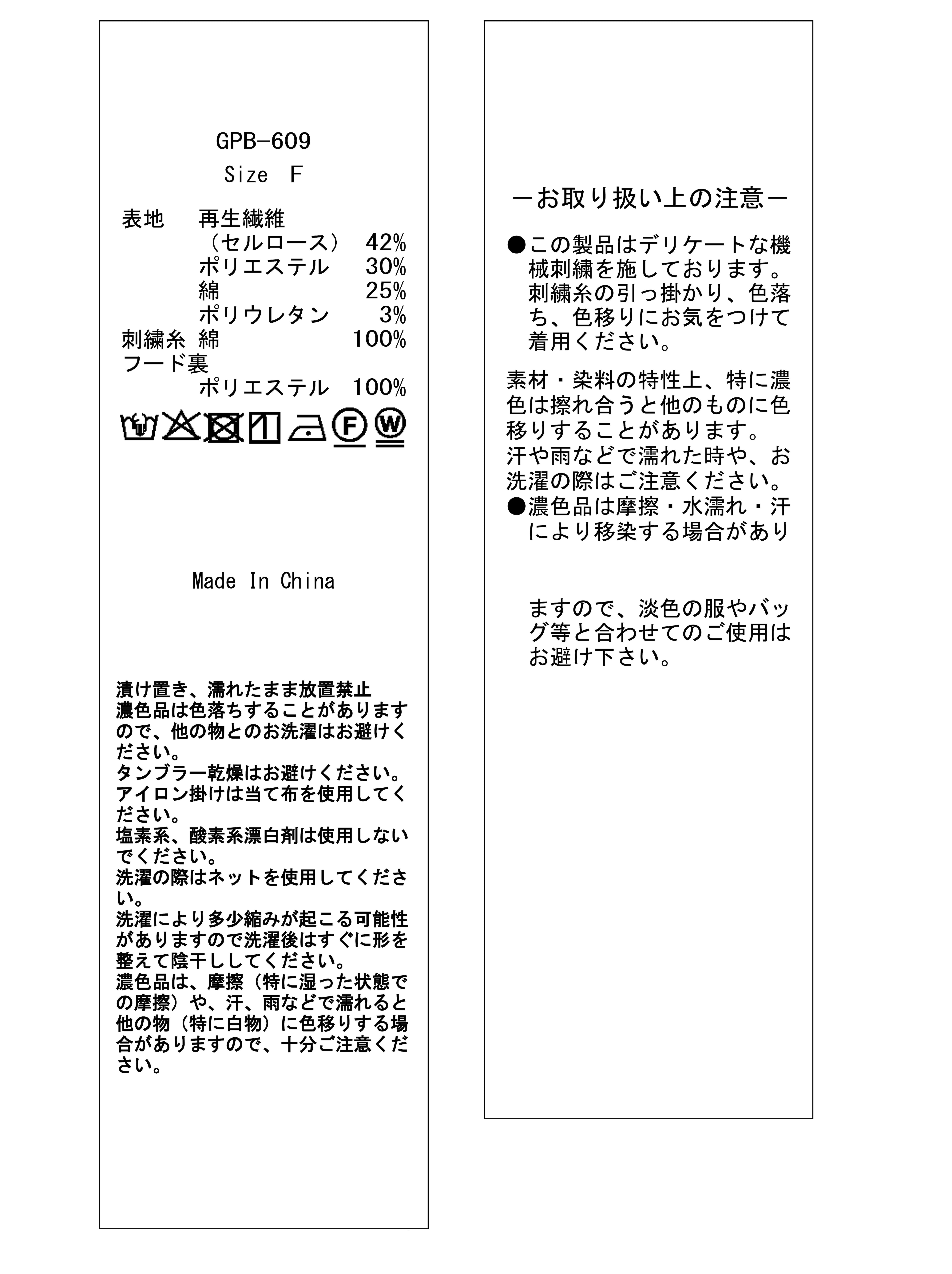 ※10. この製品はデリケートな機械刺繍を施しております。刺繍糸の引っ掛かり、色落ち、色移りにお気をつけて着用ください。
