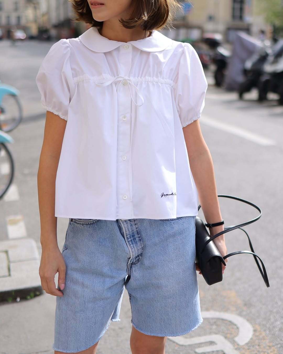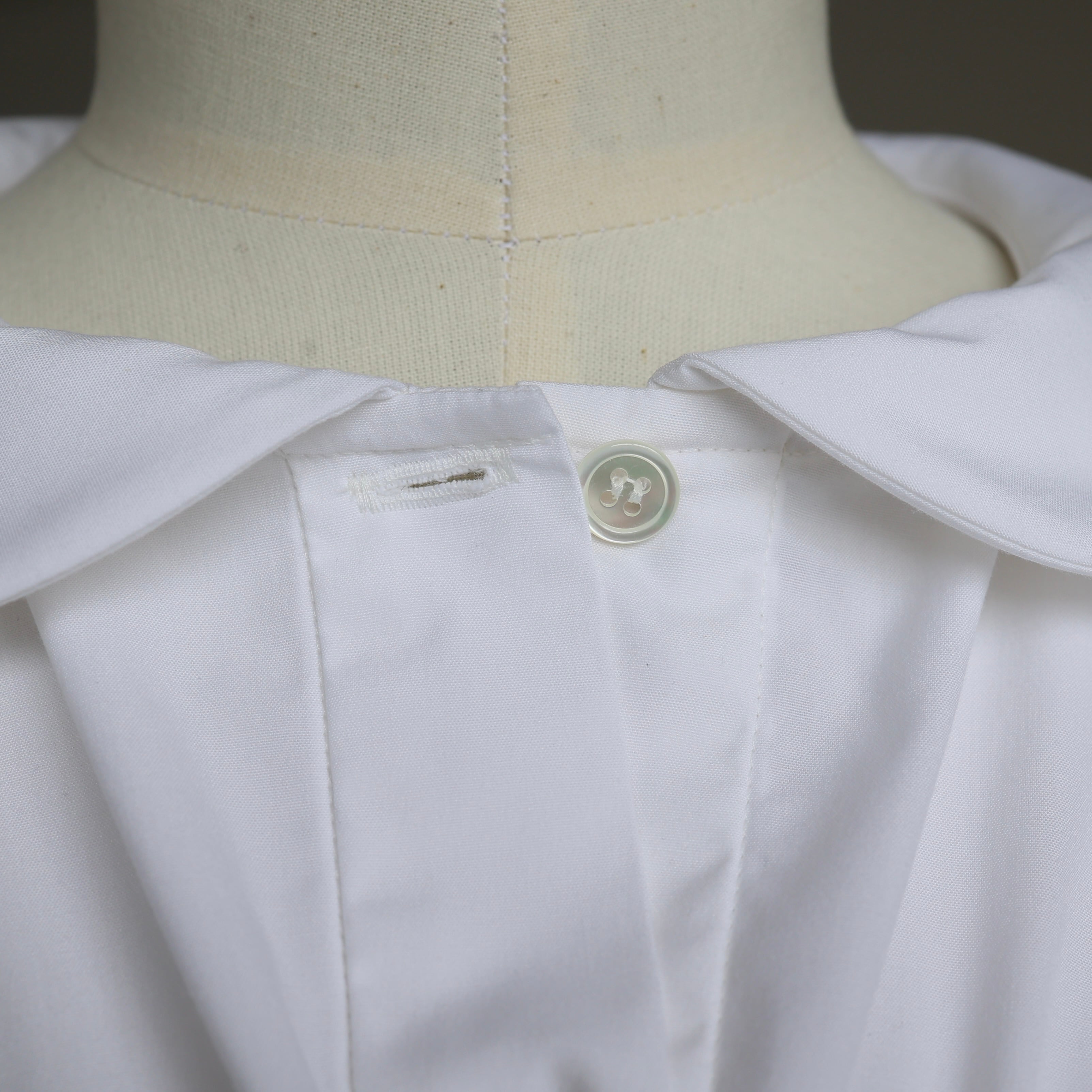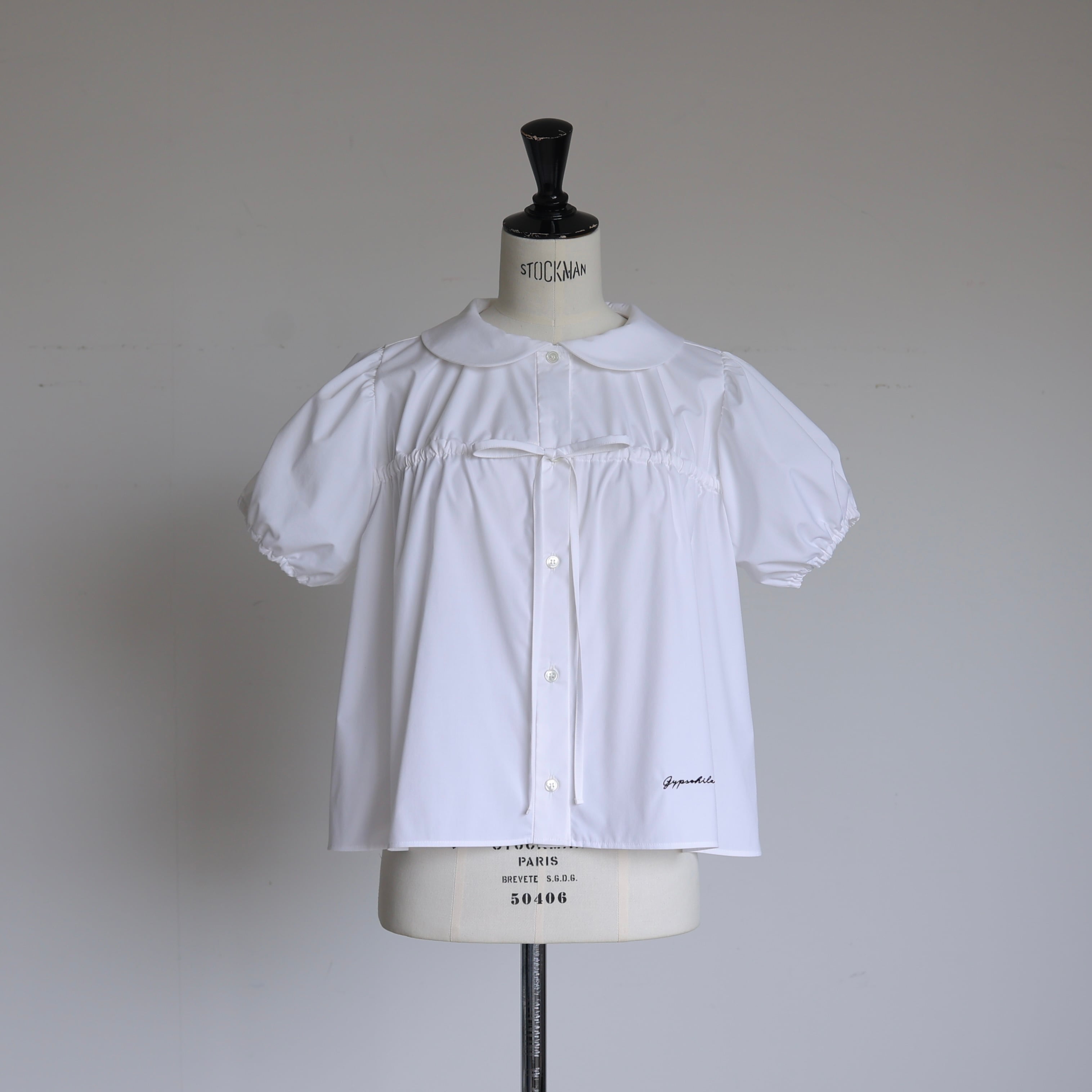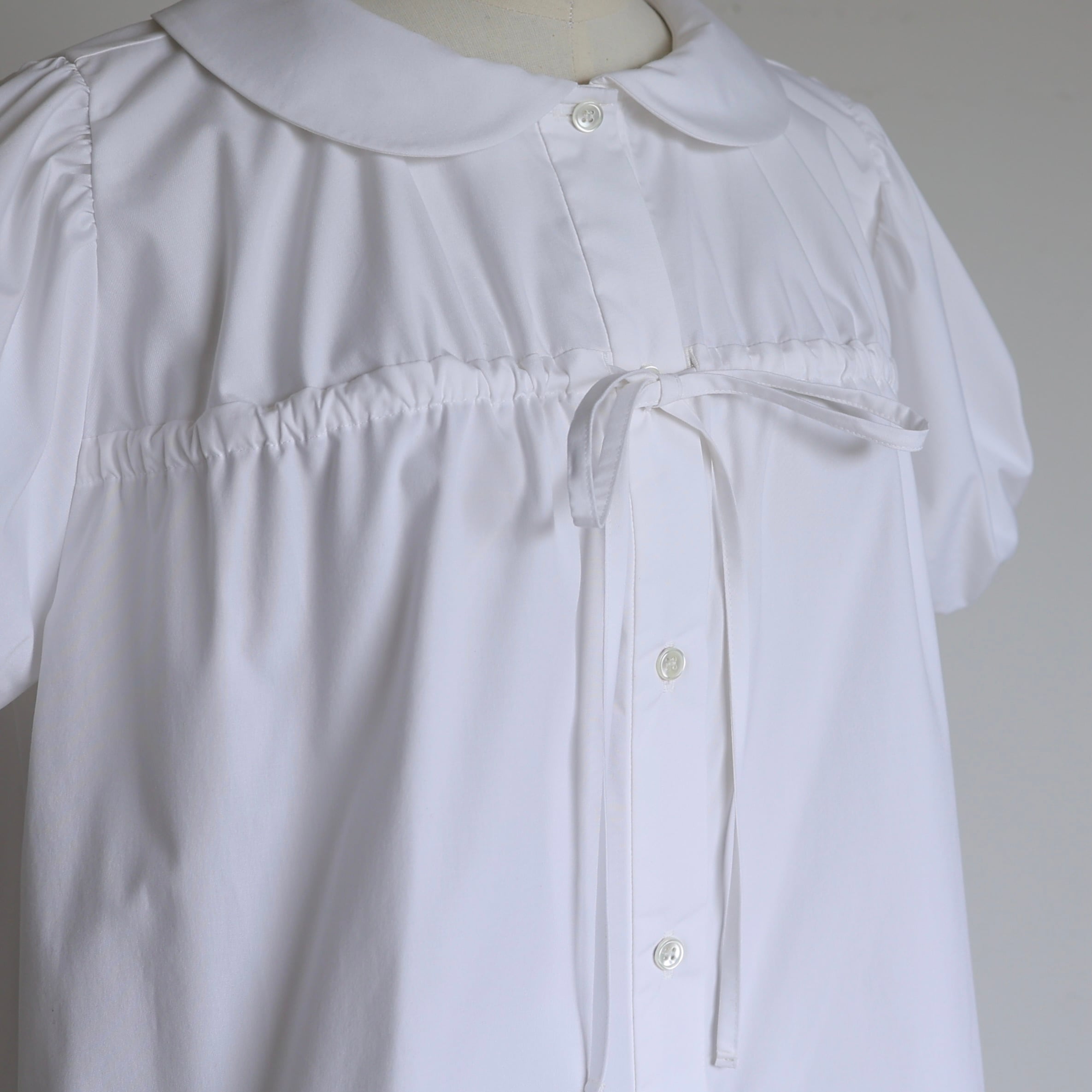 丸みのある襟と立体的なパフスリーブがやわらかな存在感を演出する一枚。
