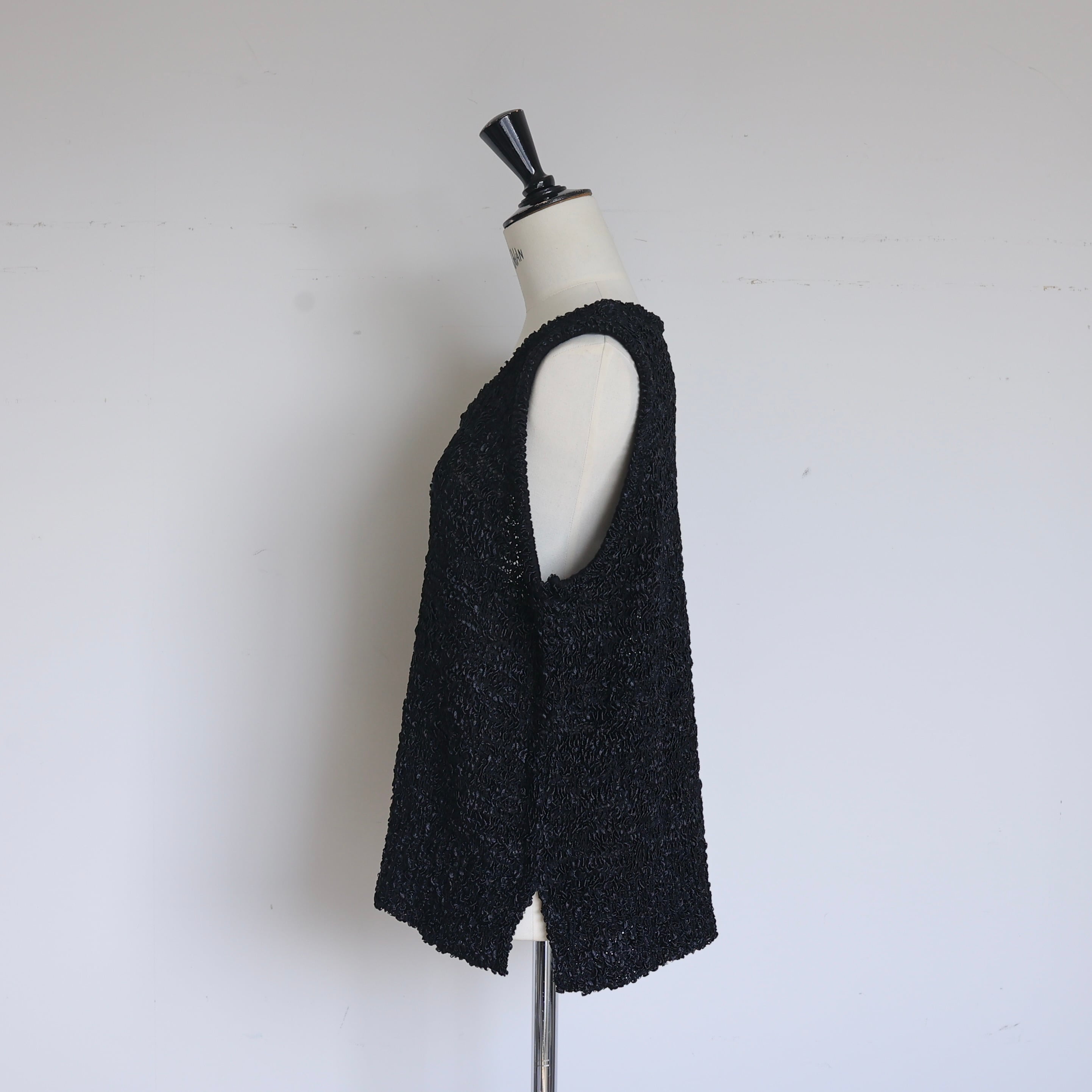 ゆるやかに編み立てた、軽やかな表情の"シュガーベスト"。