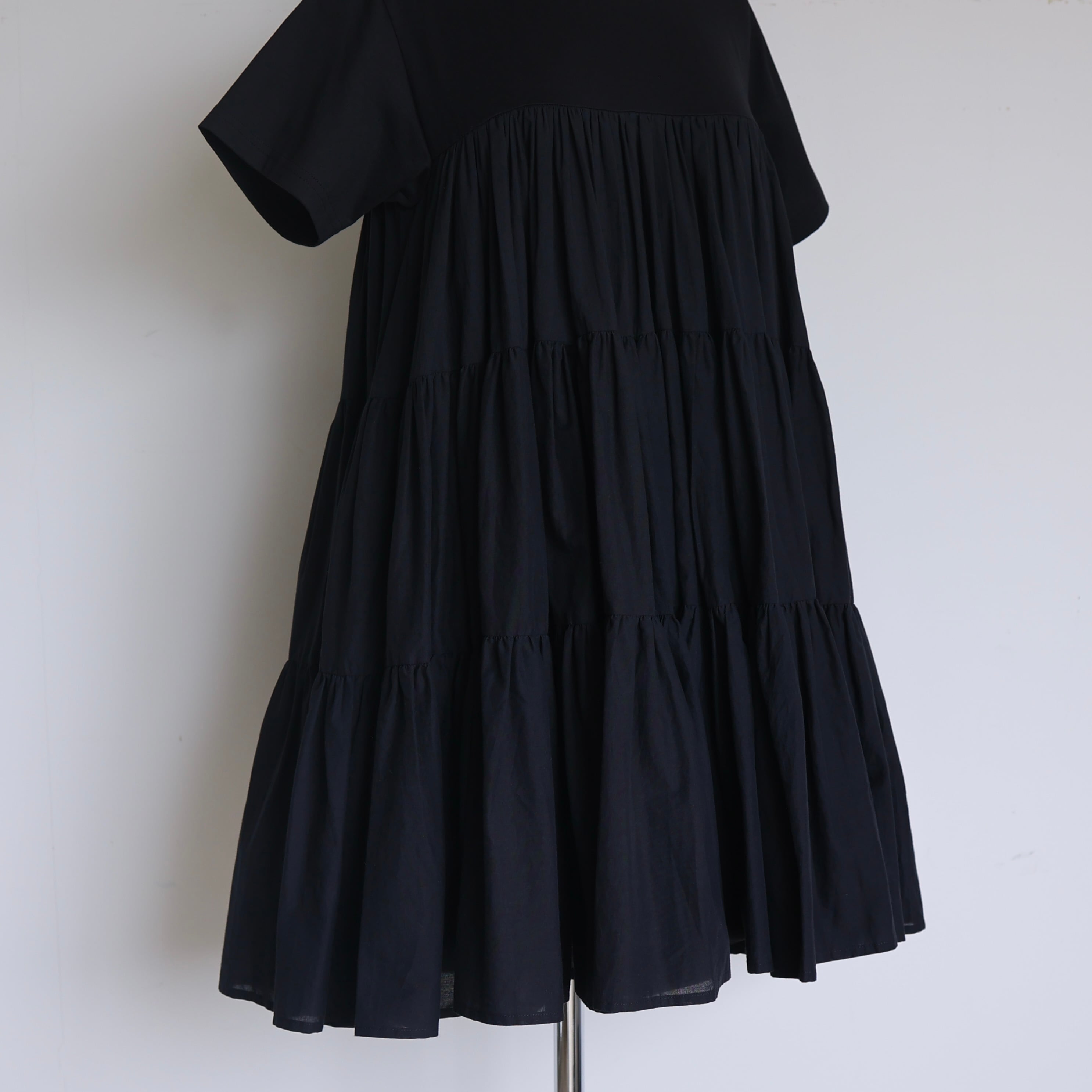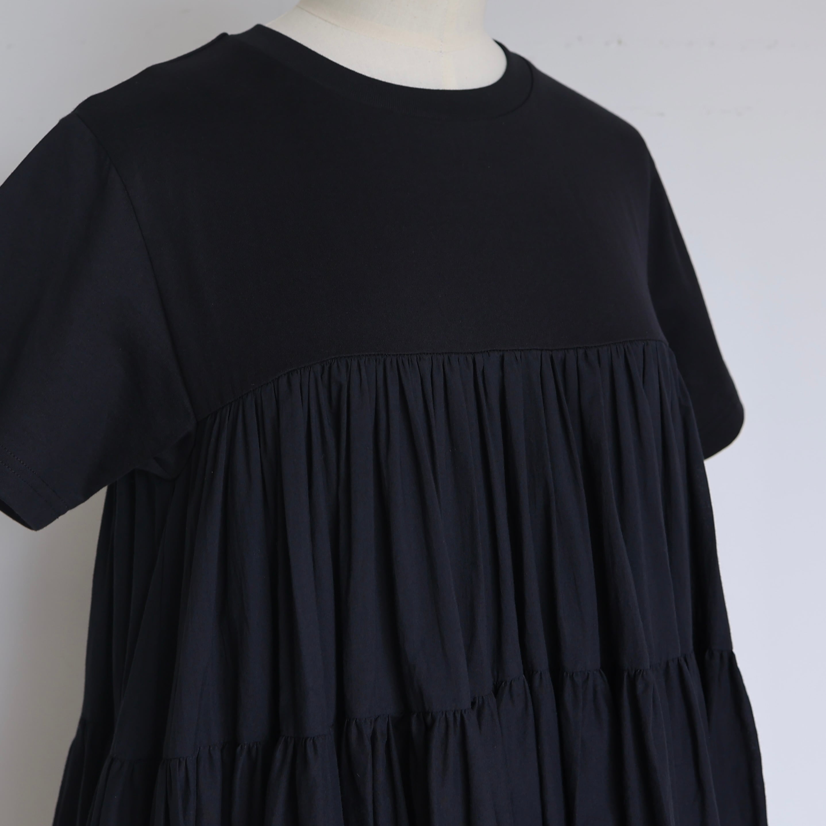 上半身はカットソー素材を使用しているため、リラクシーで快適な着心地。ティアード部分にはたっぷりと生地を使用し、贅沢なボリューム感もポイント。