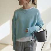 オーバーサイズでも、程よい着丈でバランスがとりやすく、どんなボトムスとも合う万能のニット。飽きのこない、シンプルなデザインはワードローブに大活躍。