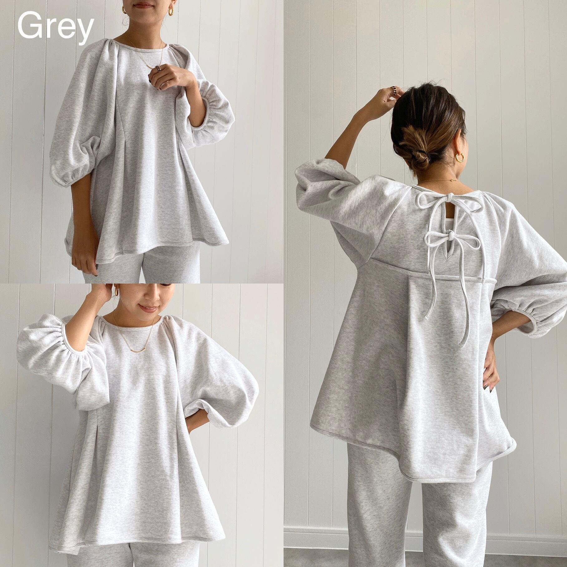 リラクシーなのにぽわんとした袖や、バックの2段リボン、そしてフレアな裾の広がりのトリプルKAWAIIが女性らしくクラスアップにご着用いただけます。
