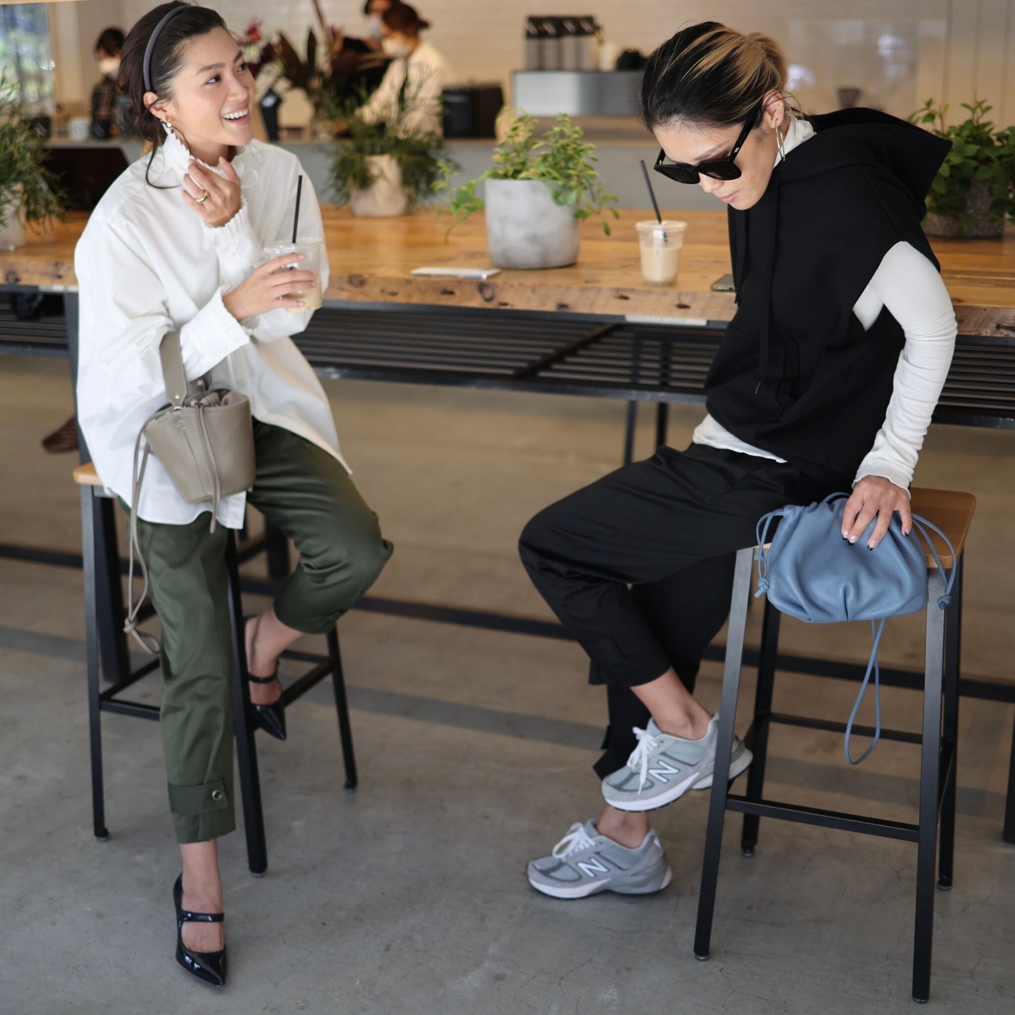 また、裾に配しております2つのボタンはとめる位置によってシルエットが異なるため、