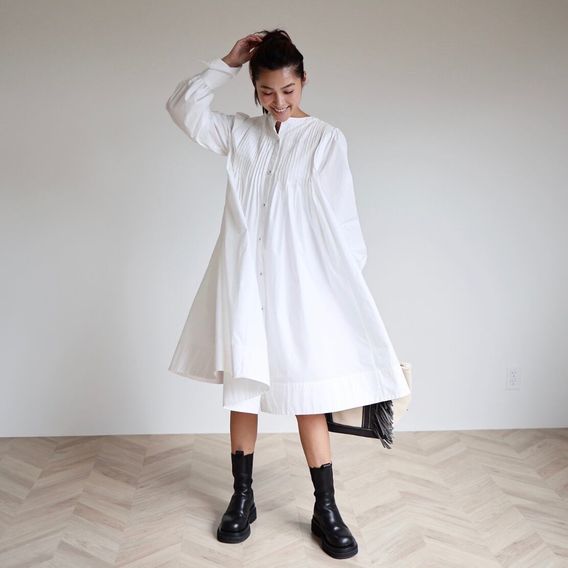 存在感のあるフロントピンタックがポイントの"Tuck Dress"ー。