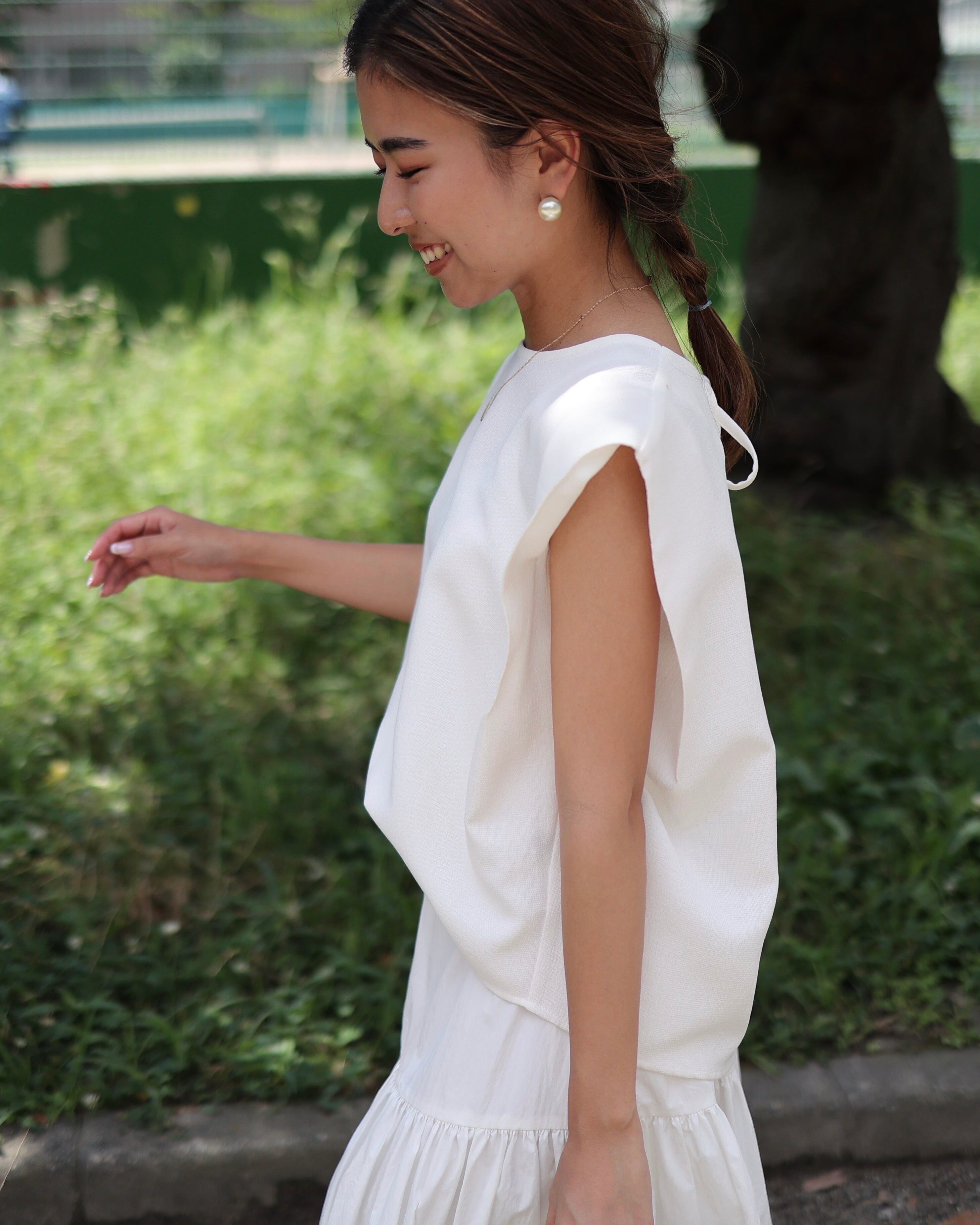 肩のラインを美しく演出し、袖から腕も華奢見えさせてくれる"シーショアトップス"