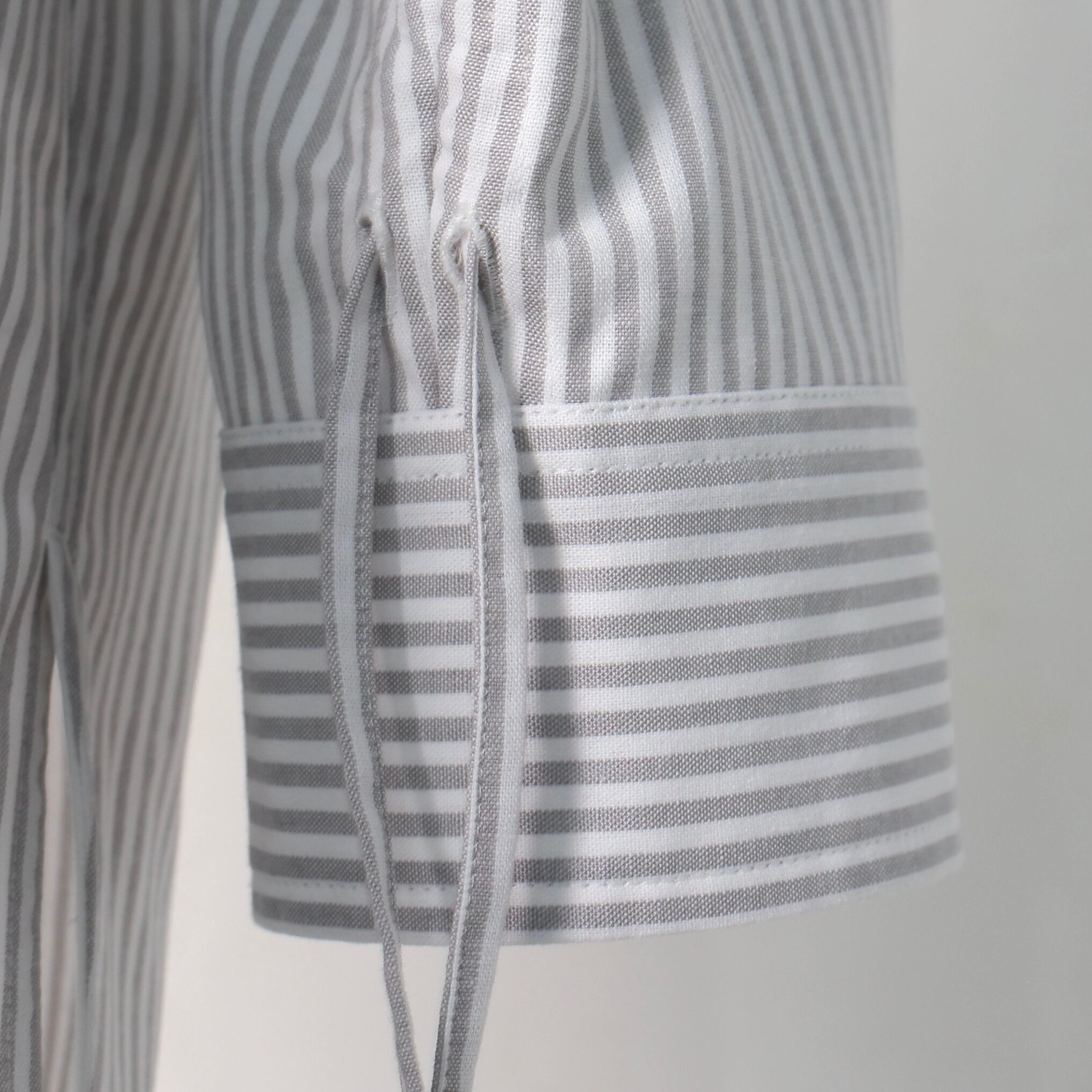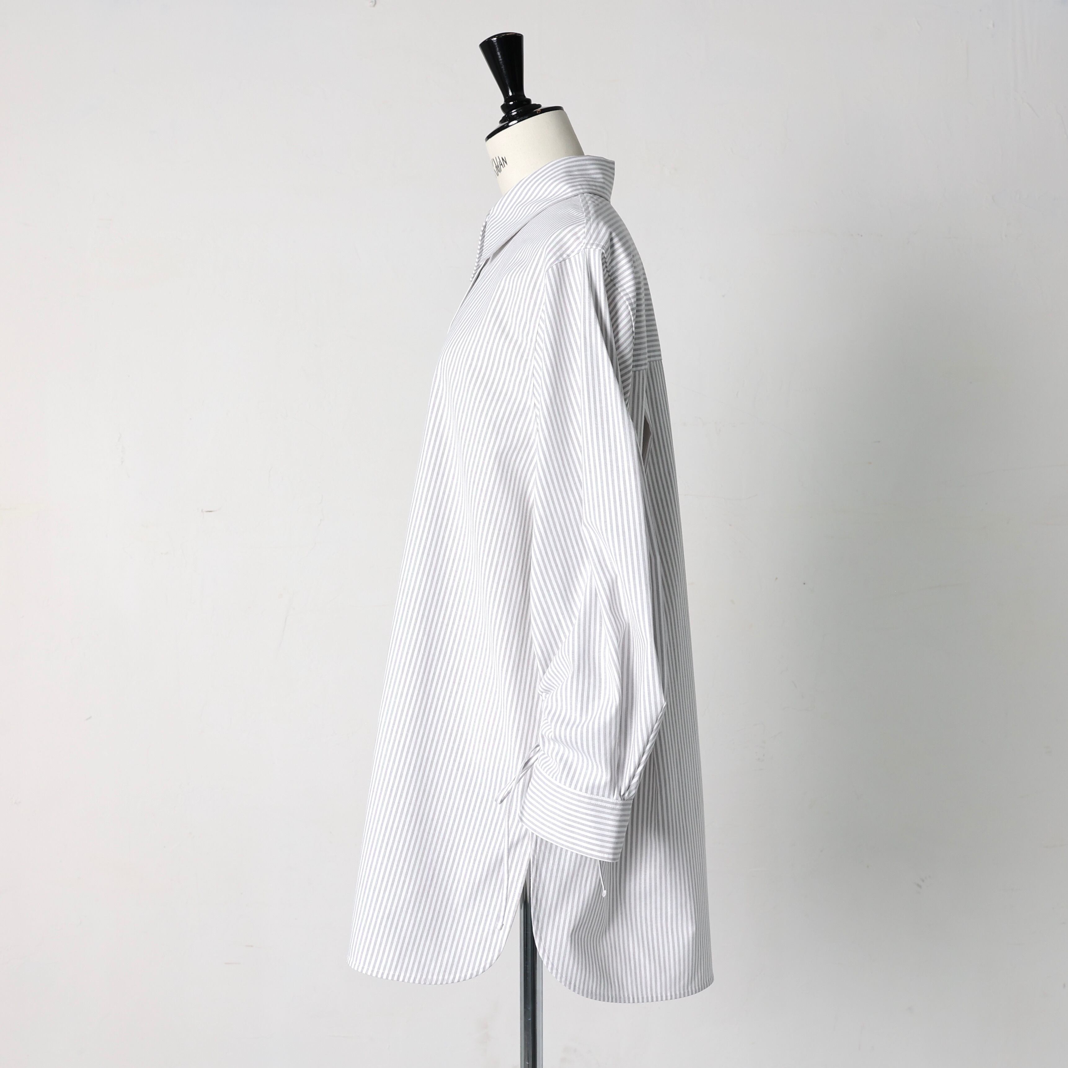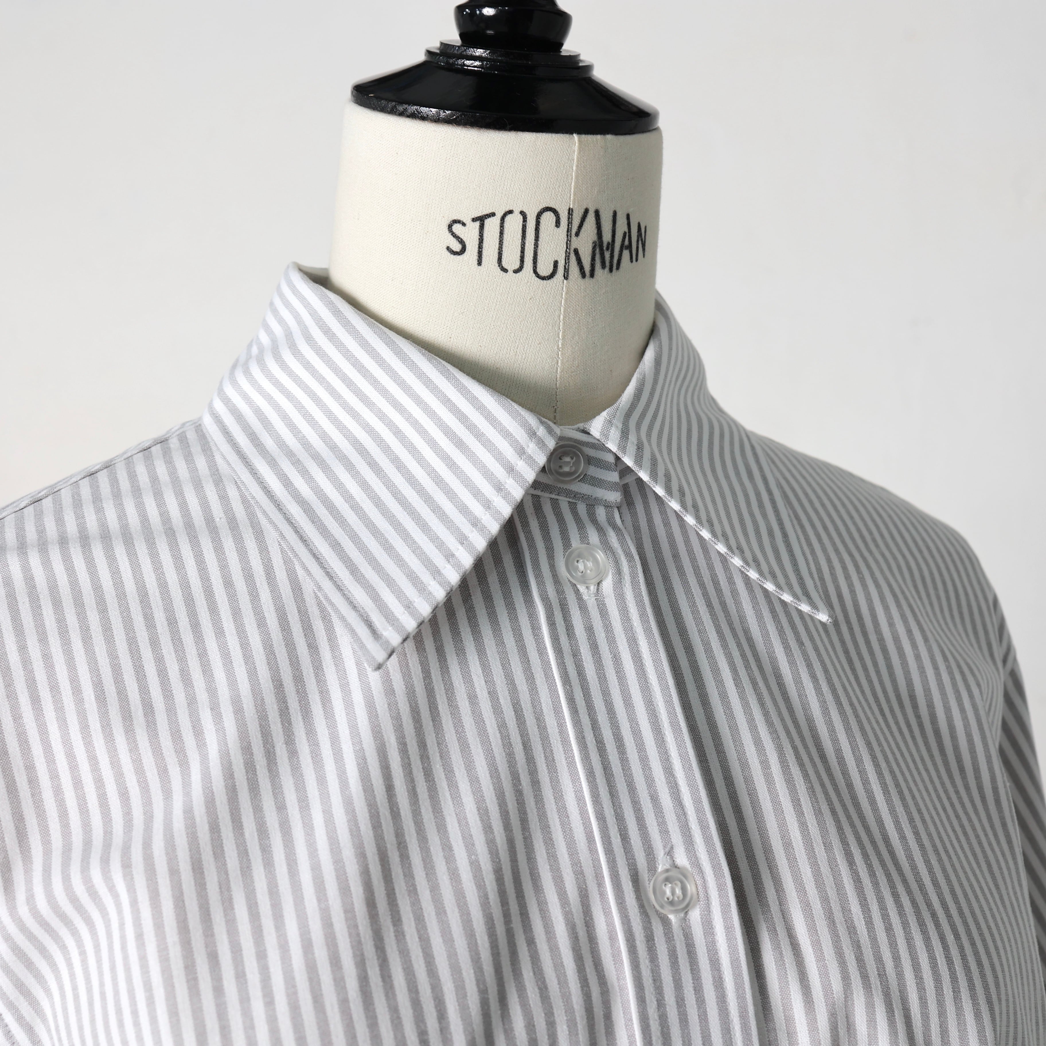 着映えするストライプなら、そこまで盛らずとも1枚でもサマになる”ストライプローブシャツ” ー。
