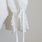 また、袖口にあしらった立体的なお花のレースとリボンが袖から見える手元を美しく演出します。
