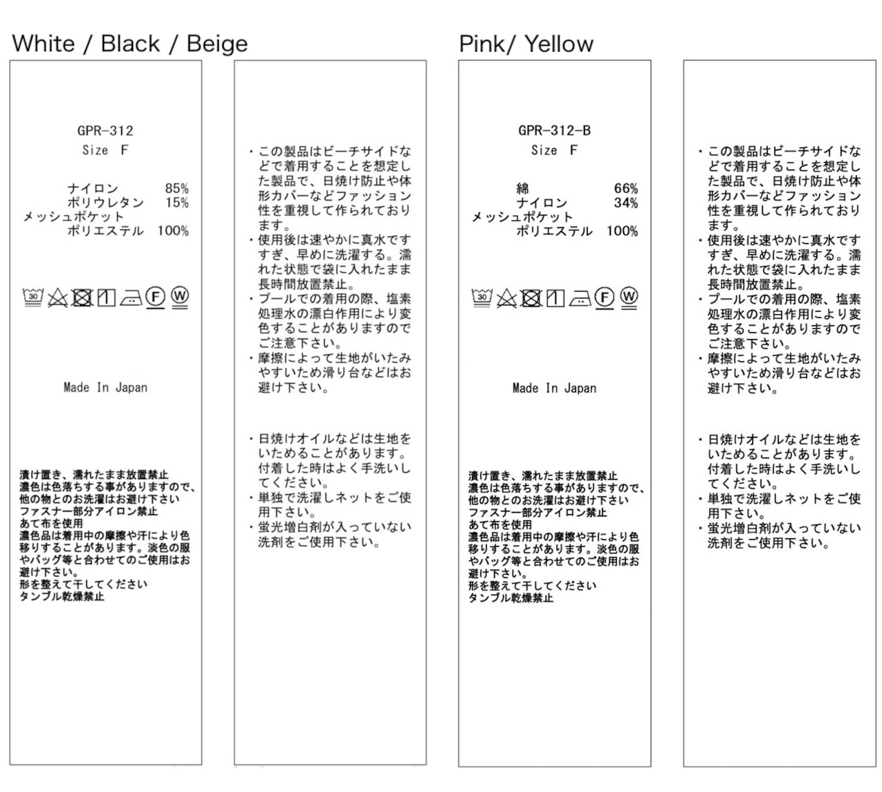 ※8. プールでの着用の際は塩素処理水の漂白作用により変色する事がありますのでご注意ください。