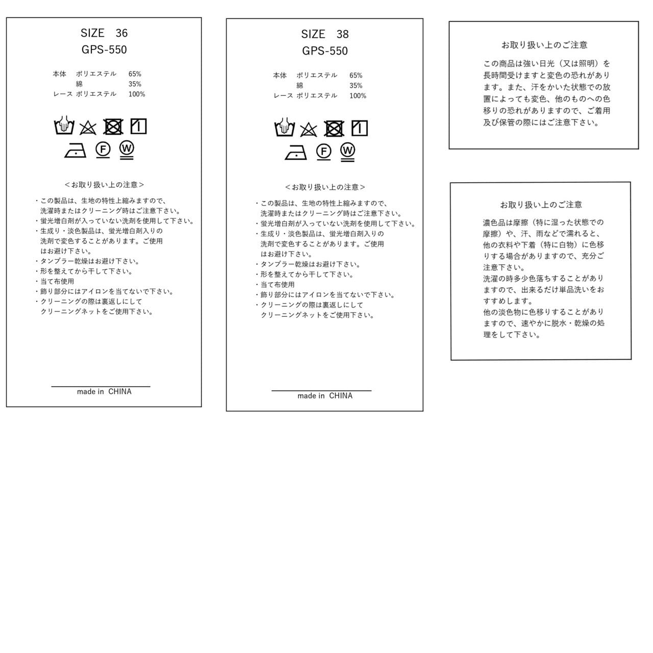 ※4. この製品は、生地の特性上縮みますので、洗濯時またはクリーニング時はご注意ください。