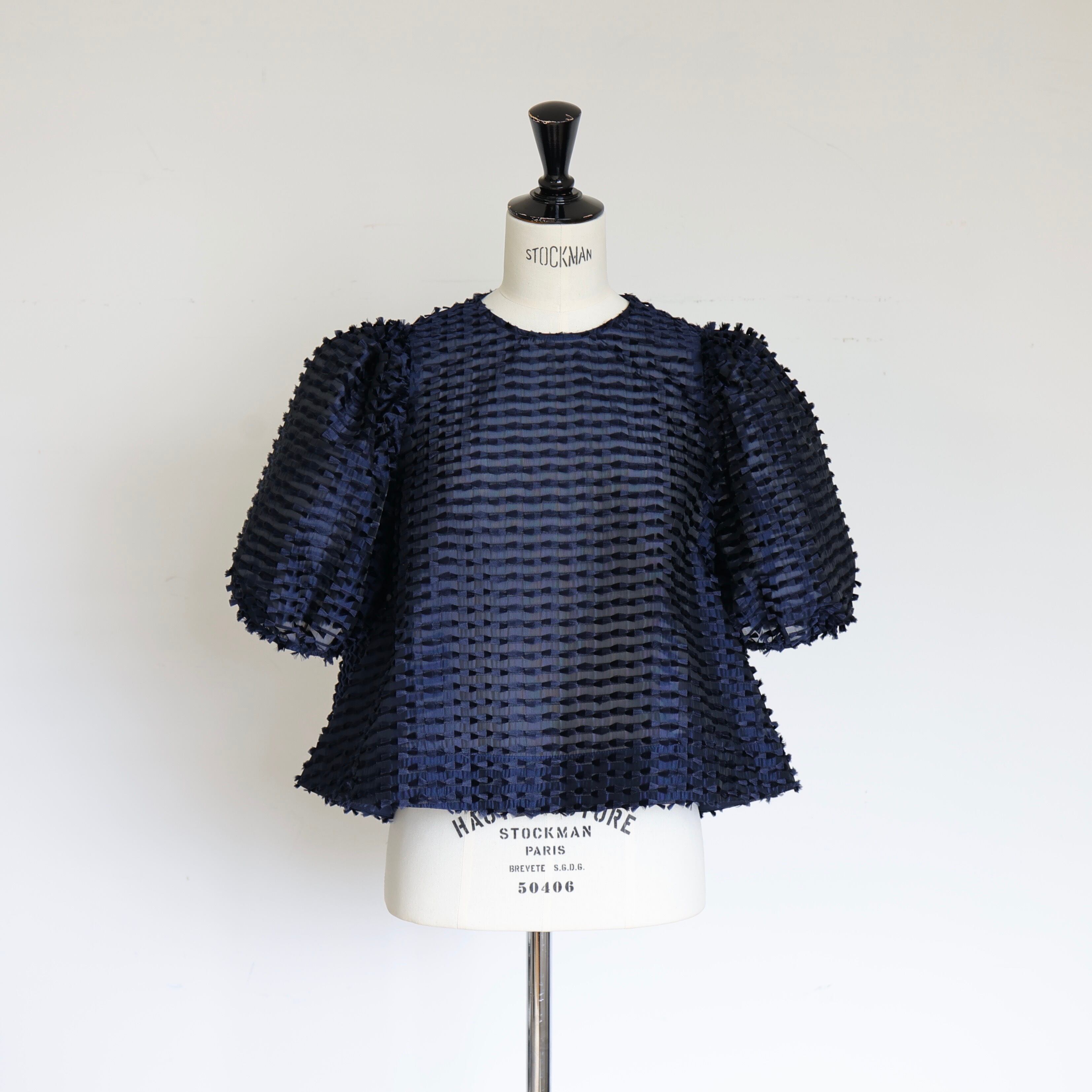 【小ぶりのリボンがアイキャッチ】絶妙なシアー感とポワンとしたスリーブデザインが女性らしい”クリスタルブラウス”ー。